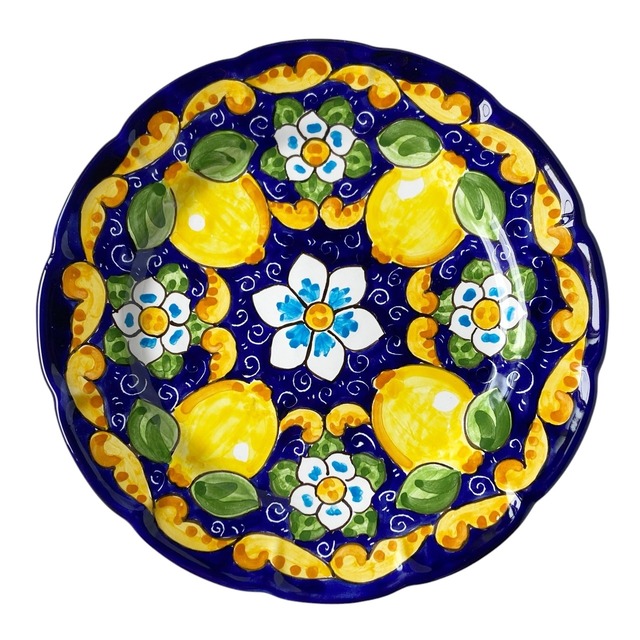 絵皿 26cm GEO045 マヨリカ焼き イタリア陶器 レモン柄 ディナー皿 コバルトブルー