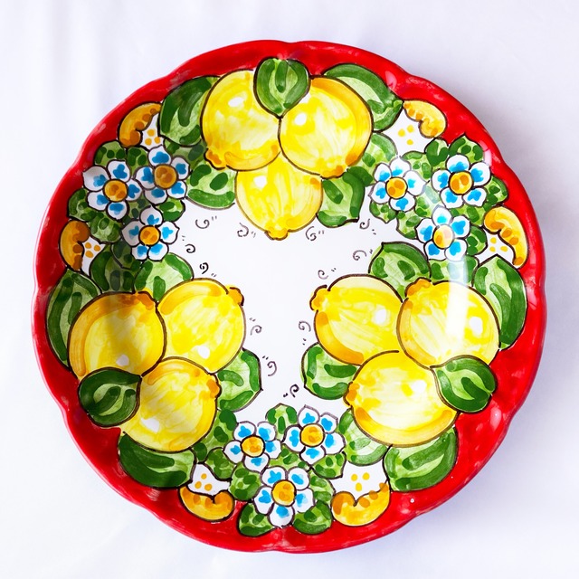 絵皿 26cm GEO055 マヨリカ焼き イタリア陶器 レモン柄 レッド