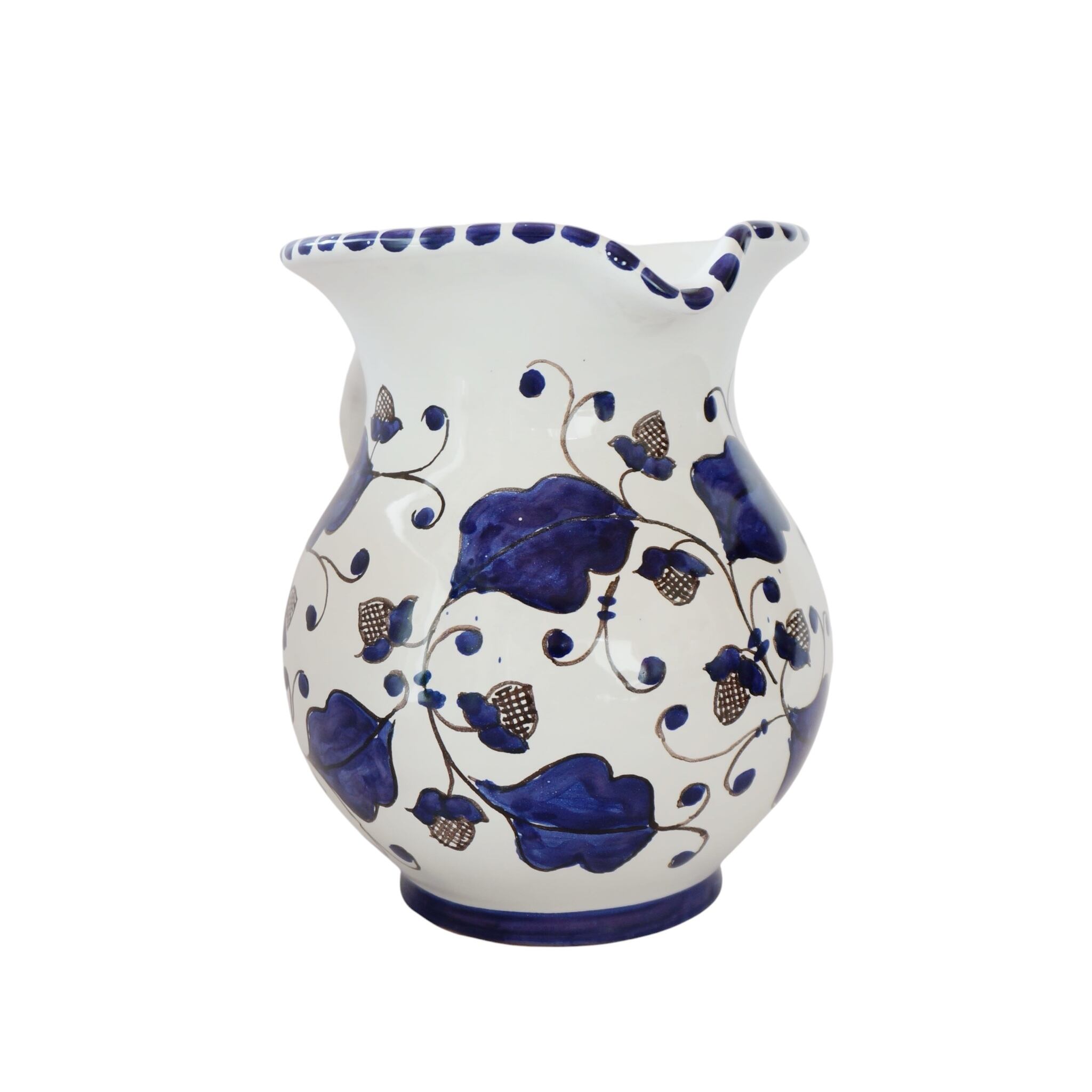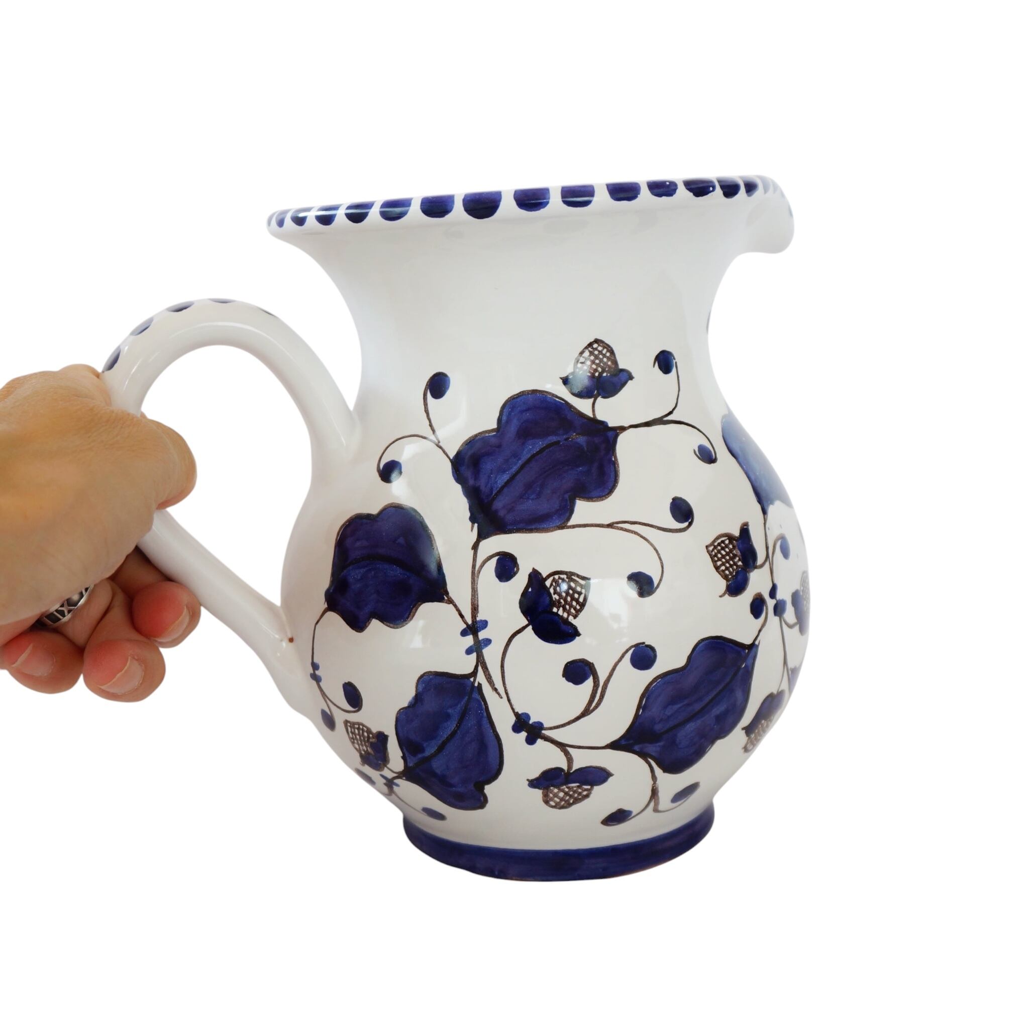 水差し ジャグ 16cm 1000mL BRC006 バイオレットブルー 草花模様 マヨリカ焼き フラワーベース ピッチャー