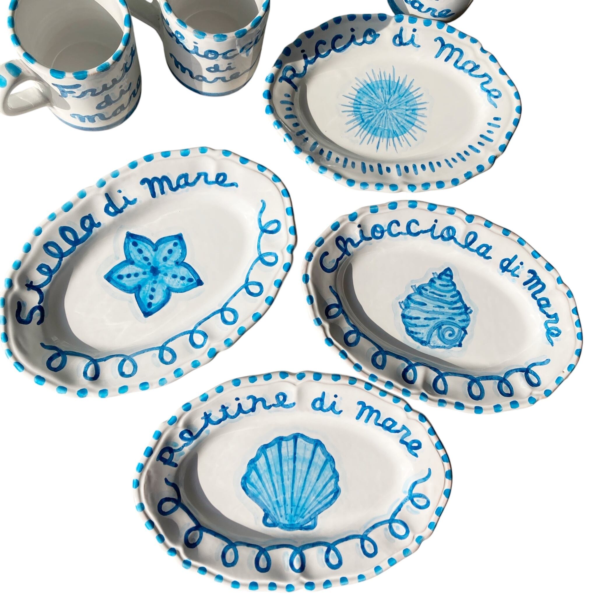 ブルーの色彩で描いた海の生物、料理が映えるオーバル皿。