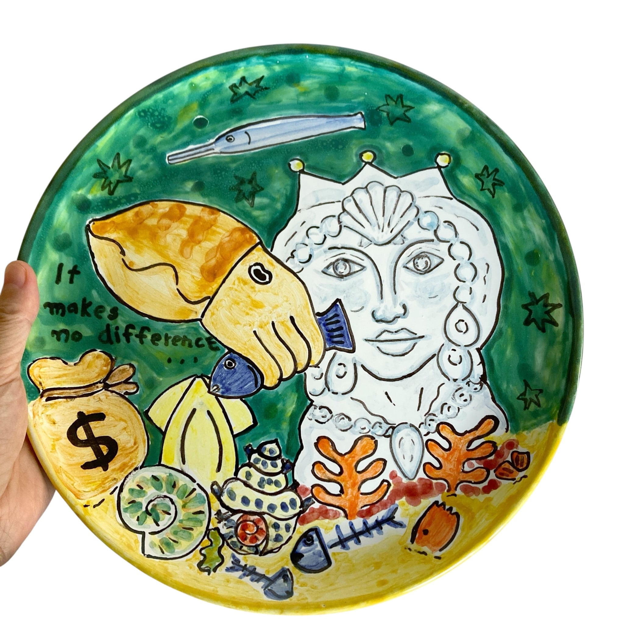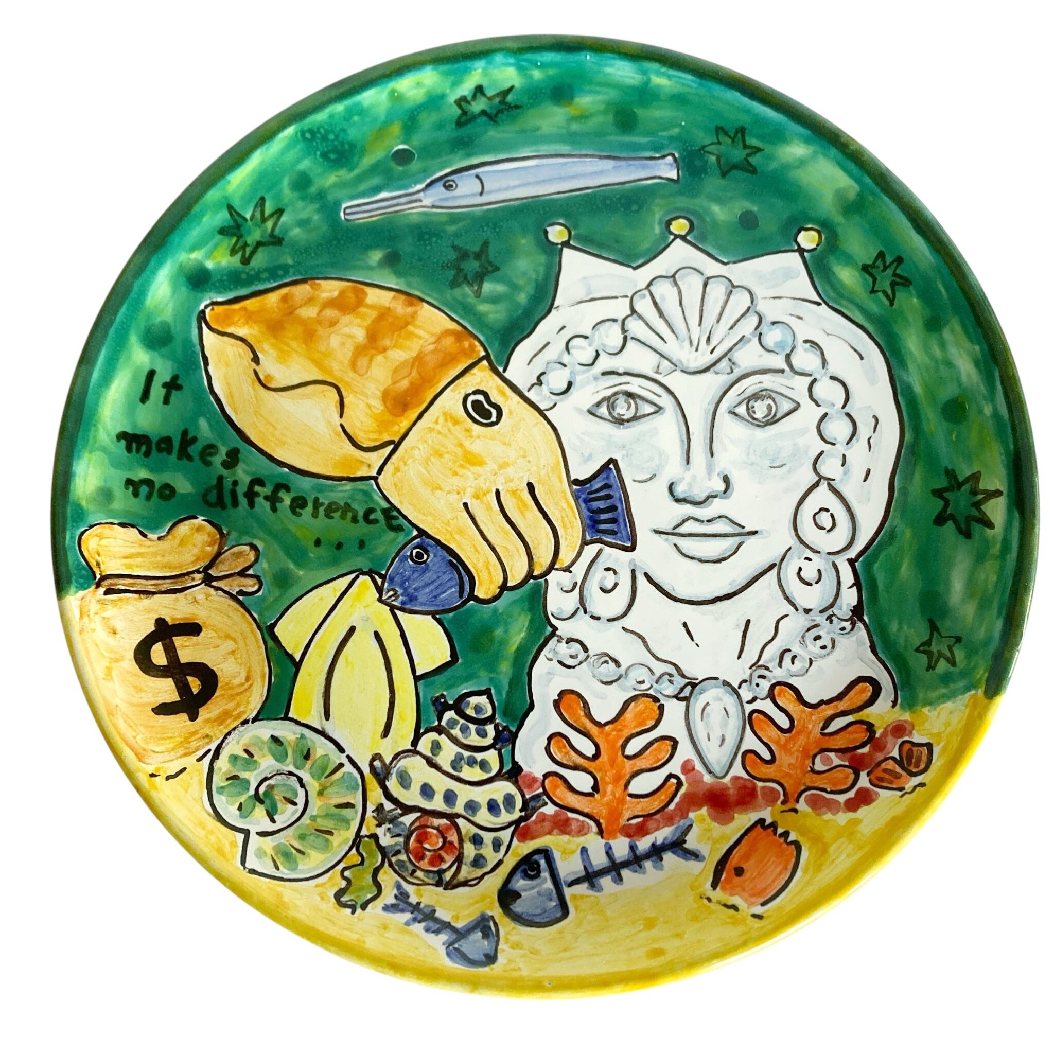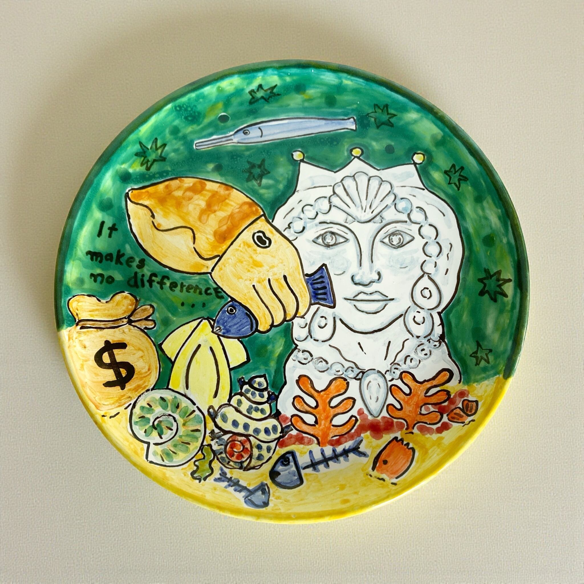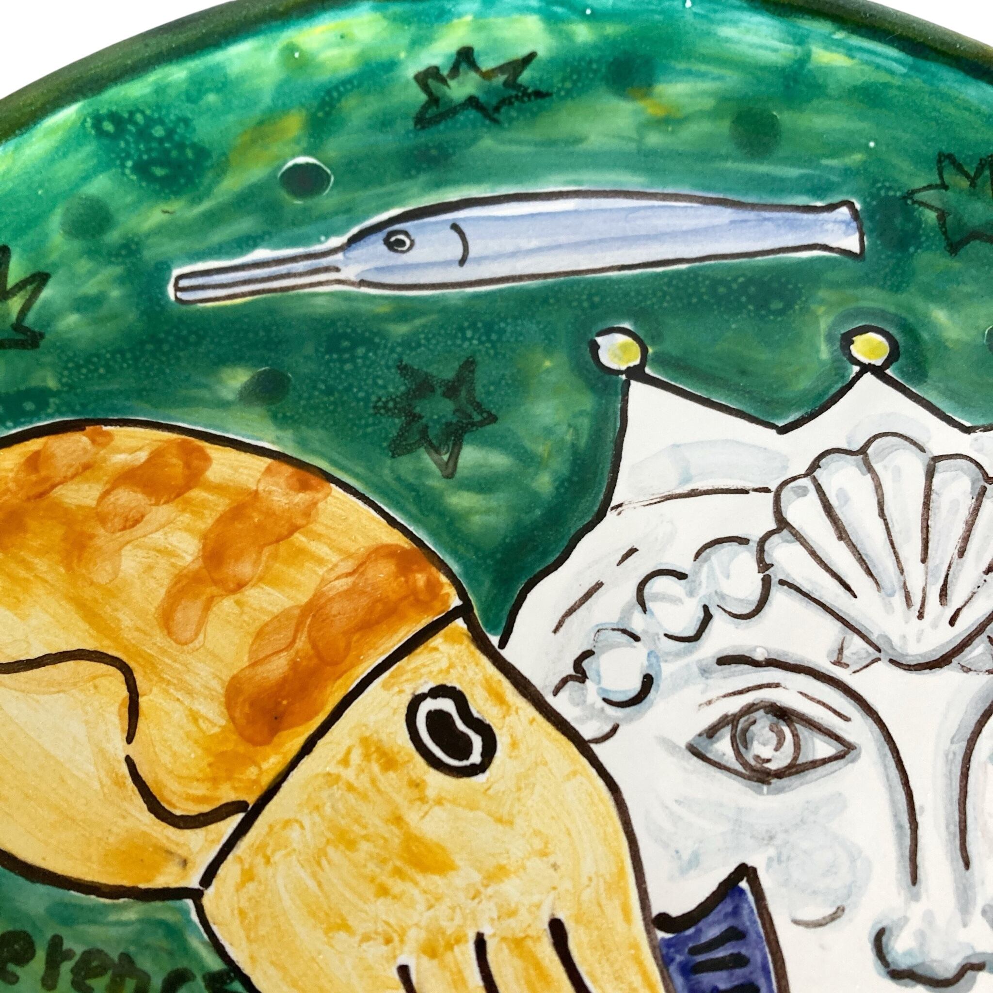 飾り皿 26cm ART003 コウイカと女性像 マヨリカ焼き イタリア陶器 ウォールプレート 飾り皿