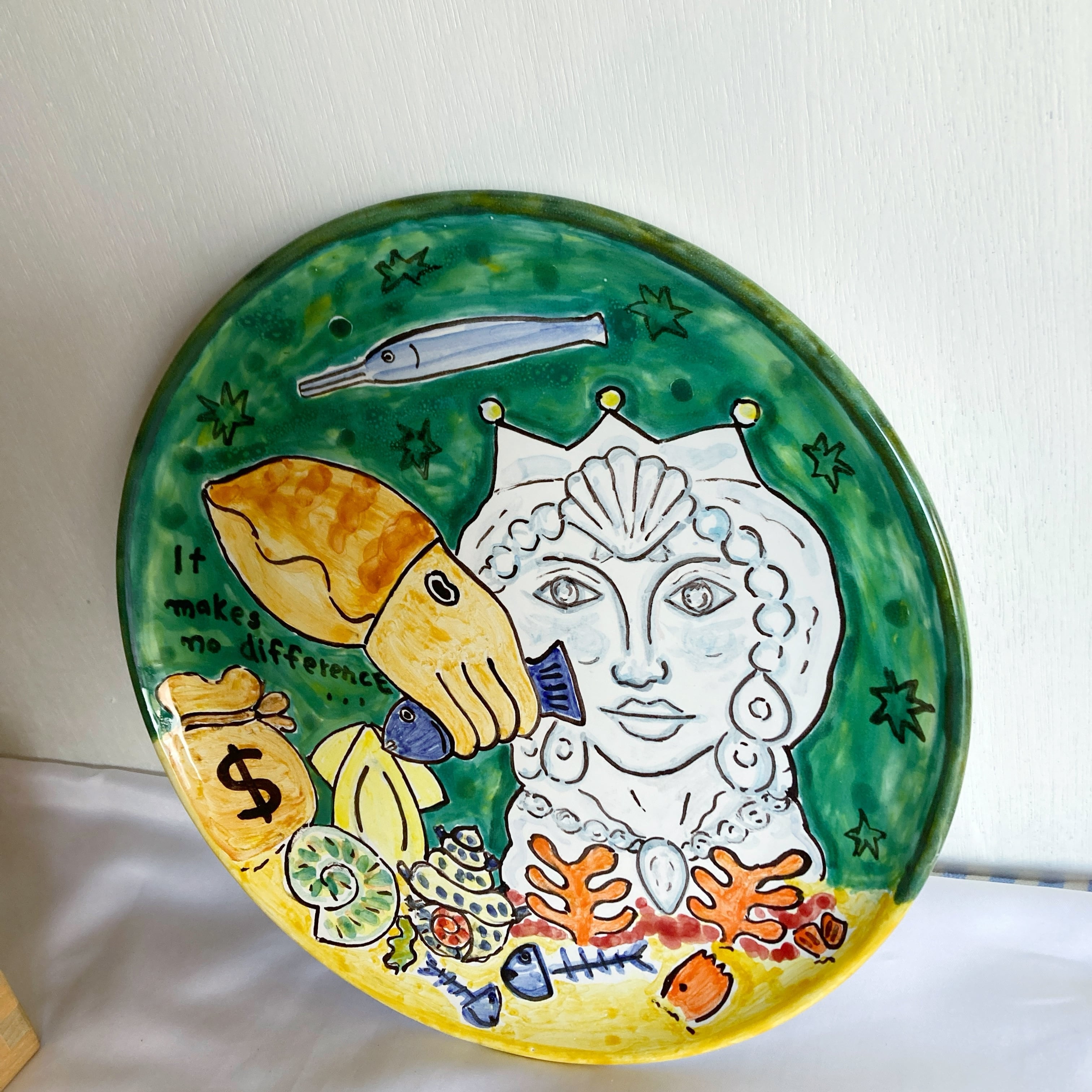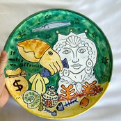 絵皿 26cm ART003 コウイカと女性像 マヨリカ焼き イタリア陶器 ウォールプレート 飾り皿
