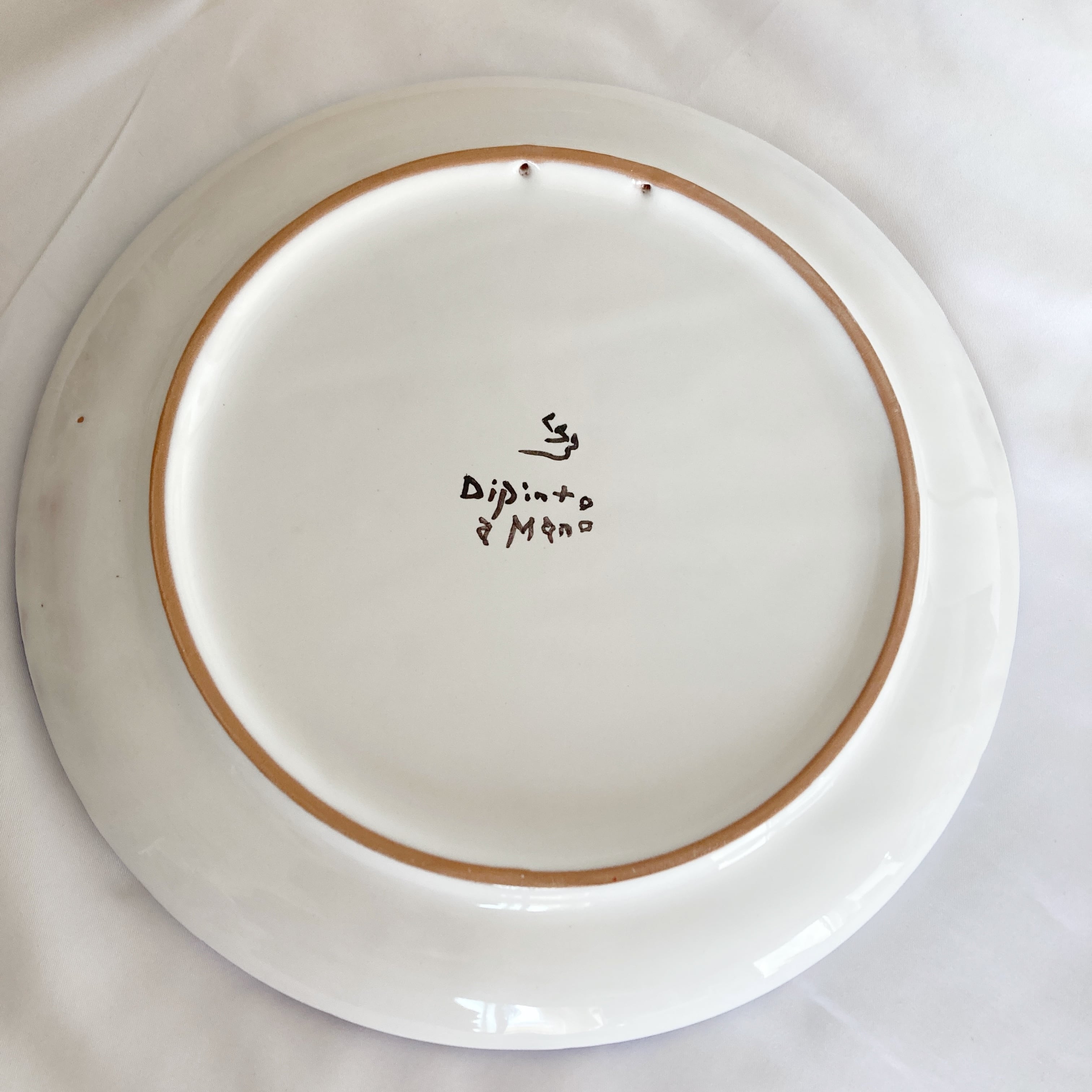 イタリアから取り寄せた素材(素焼き、顔料、釉薬)を使用してます。燃焼温度は約1000度前後で、色鮮やかに焼き上がります。