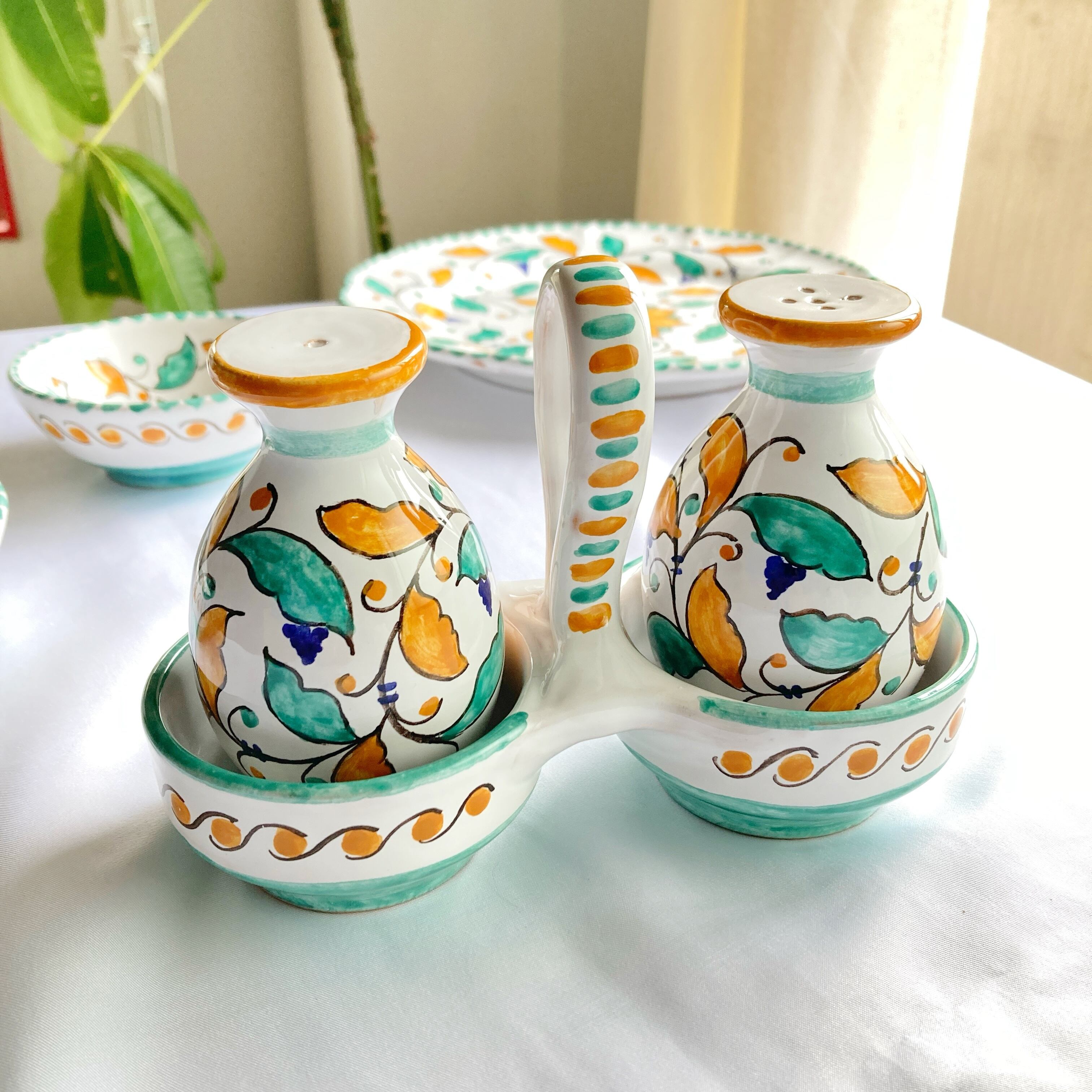 スパイスシェーカー マヨリカ焼き イタリア陶器 塩コショウ入れ 植物柄 SEP010