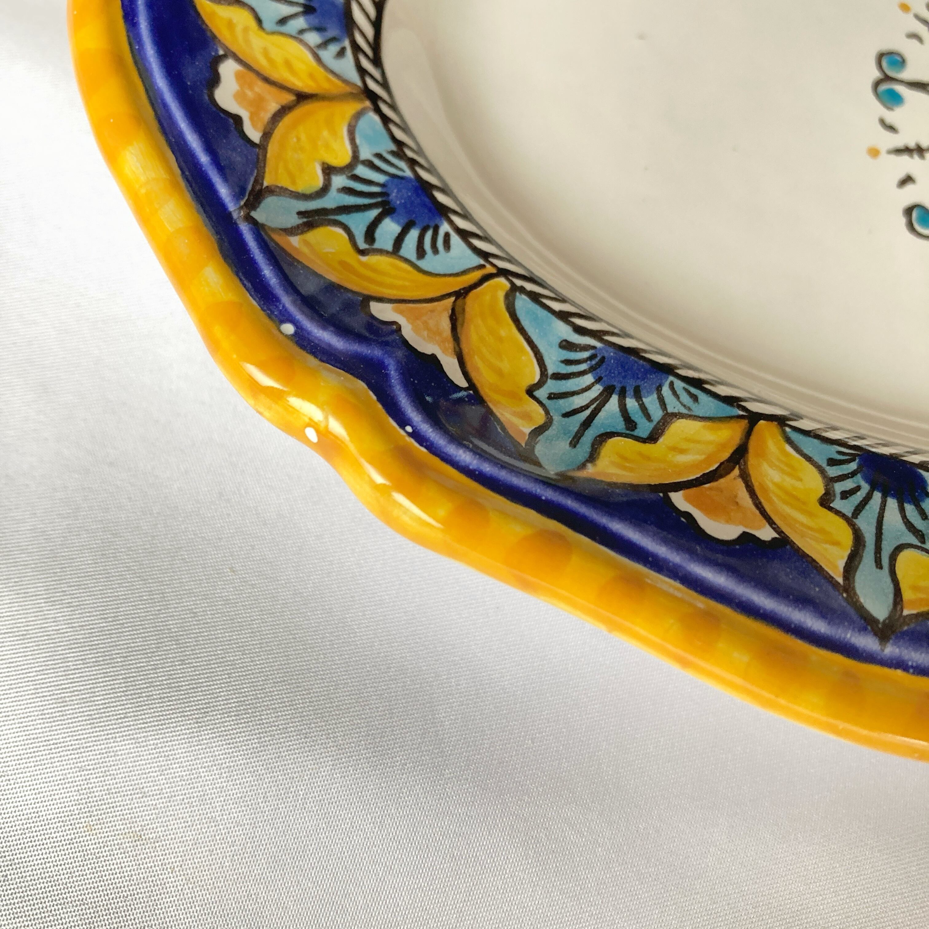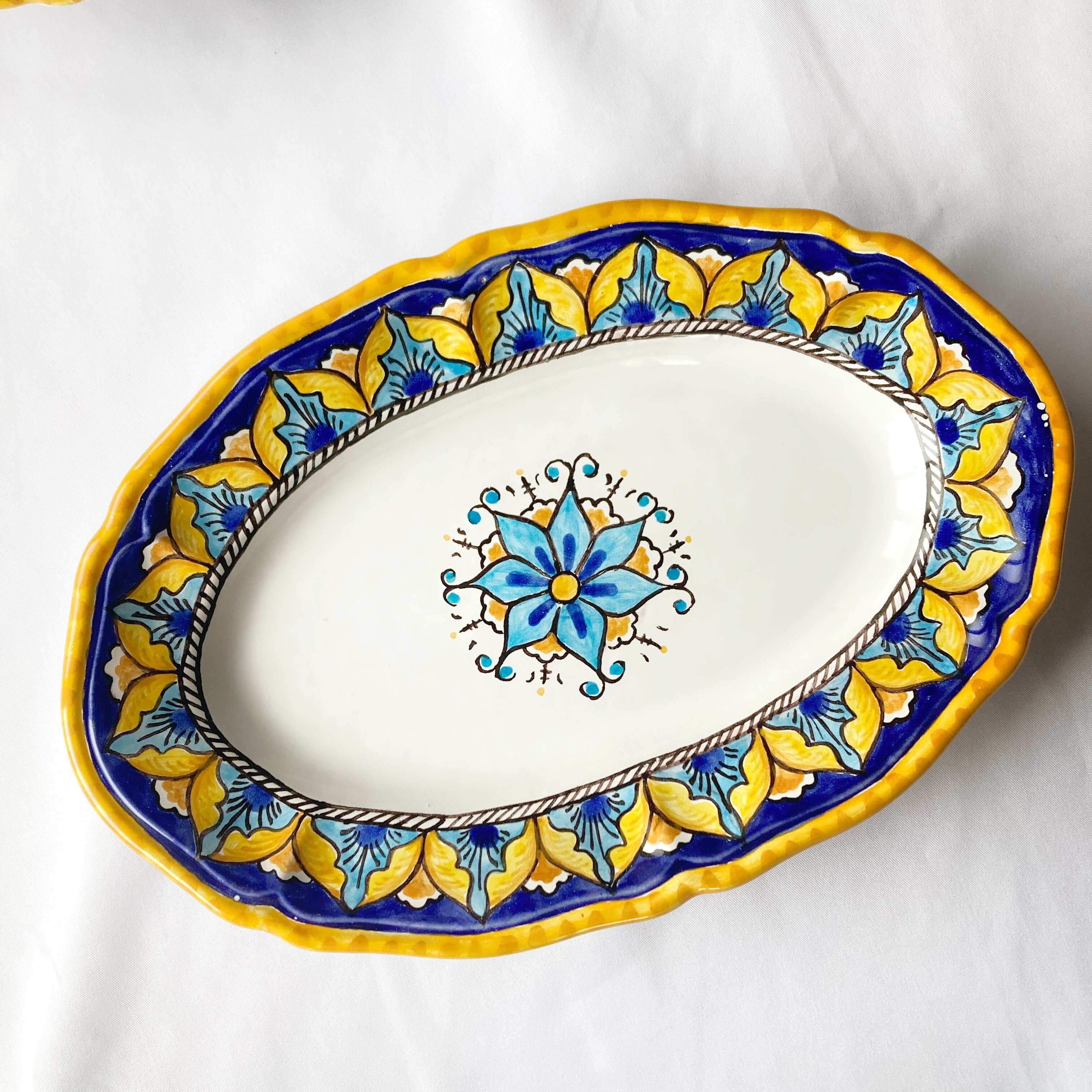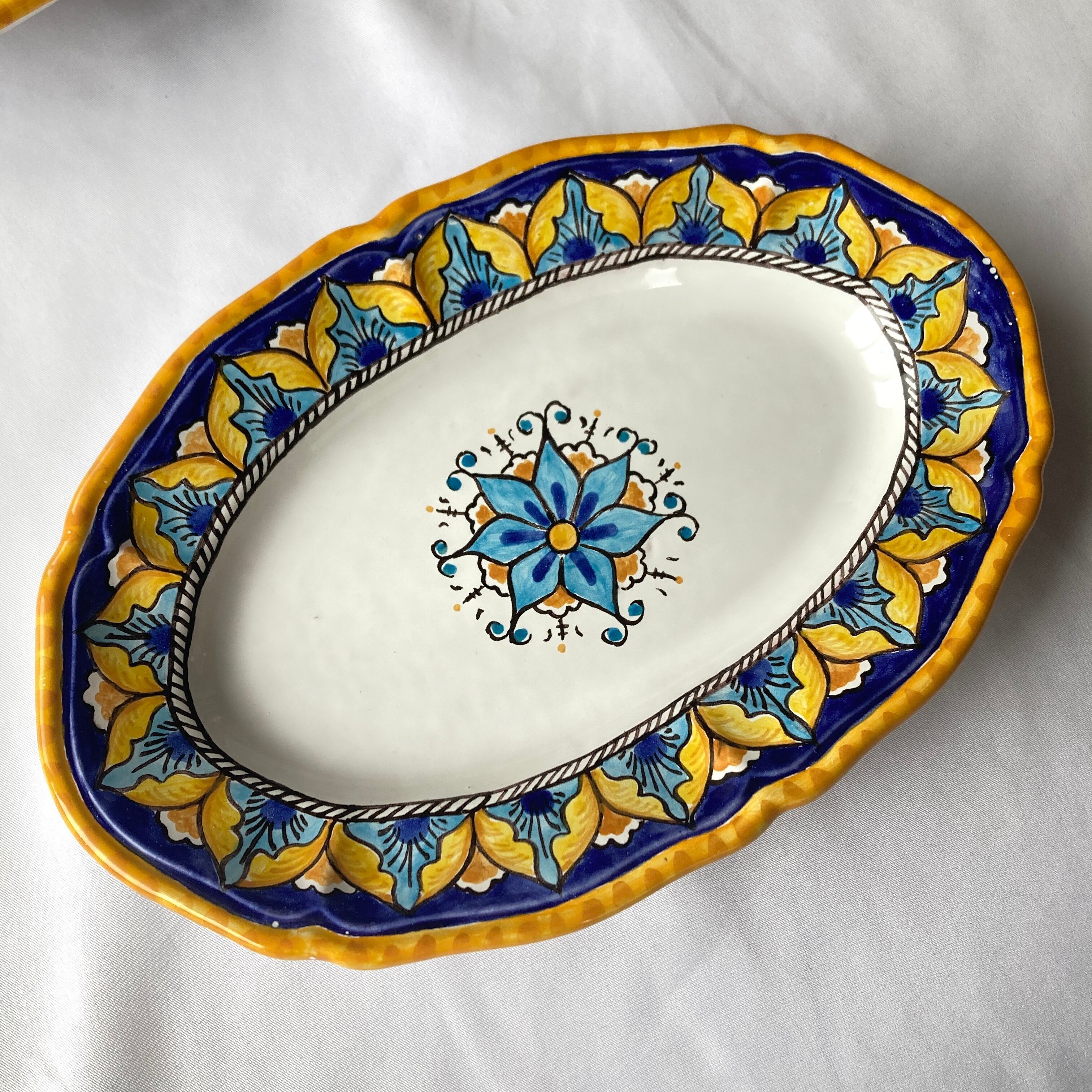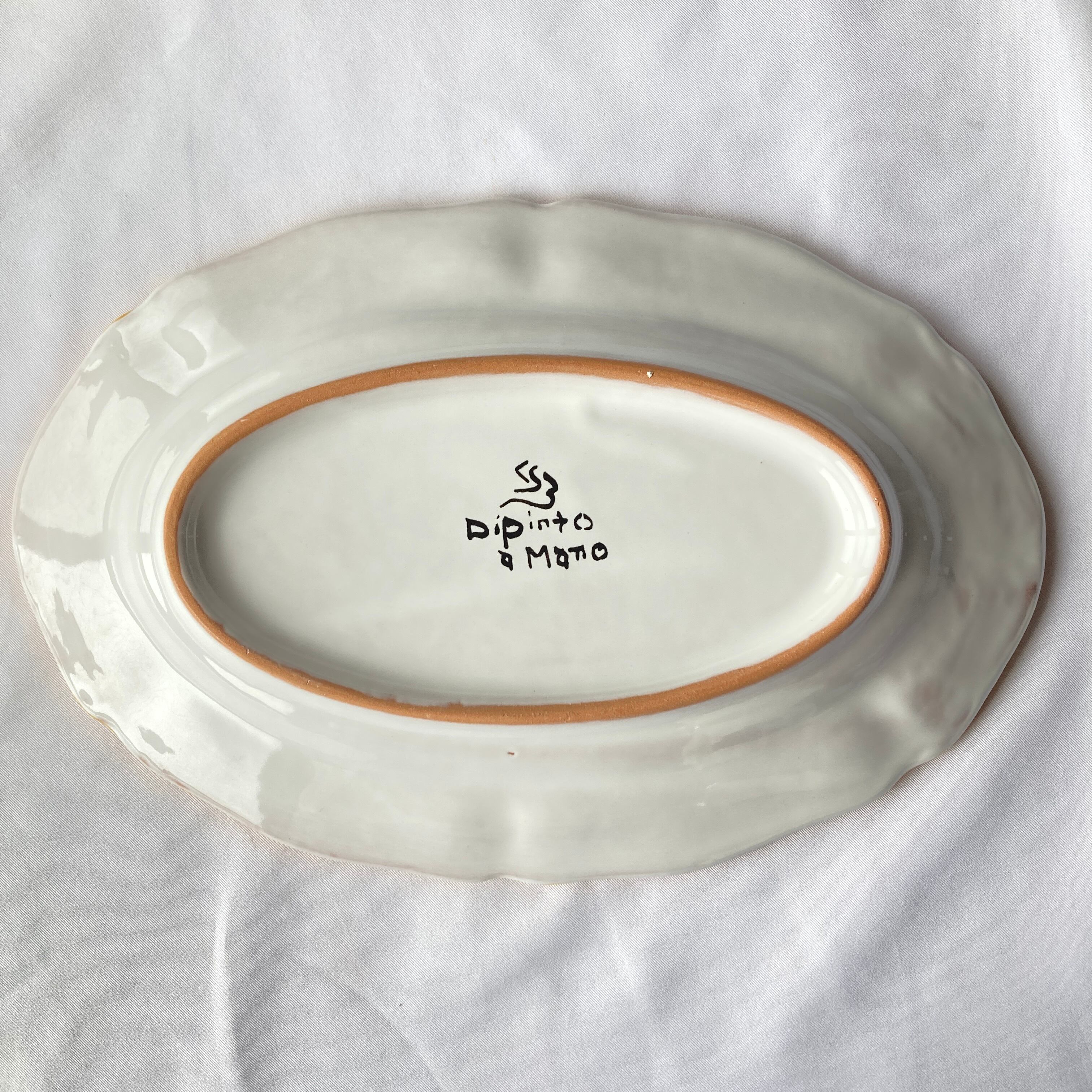 マヨリカ焼きの伝統色で描いた草花模様、エレガントなオーバル皿。