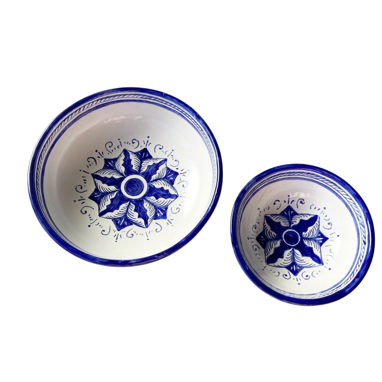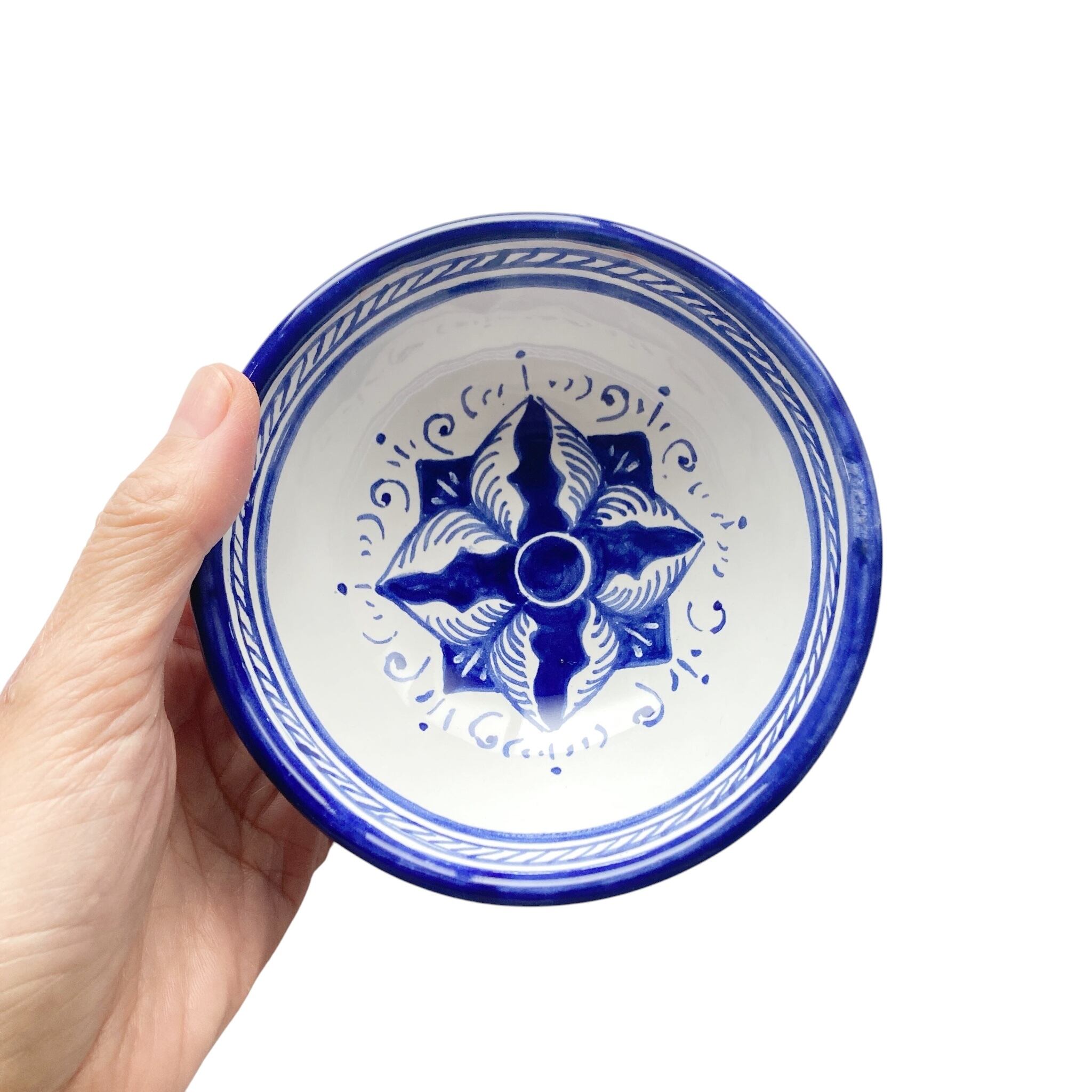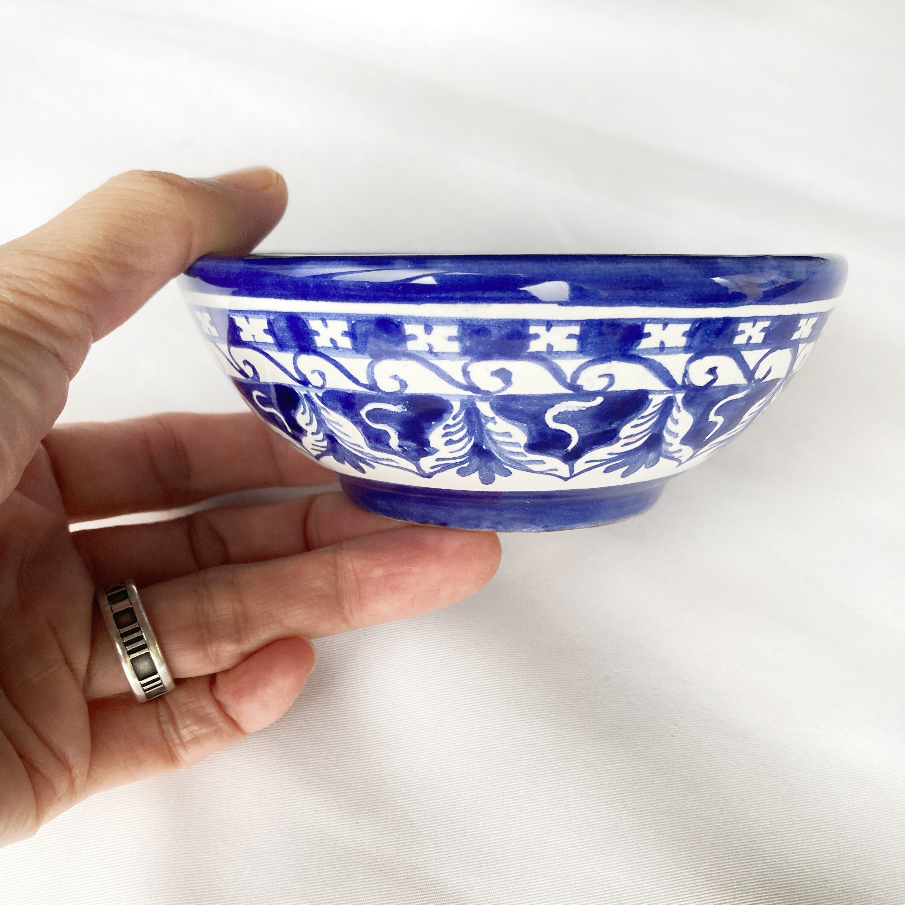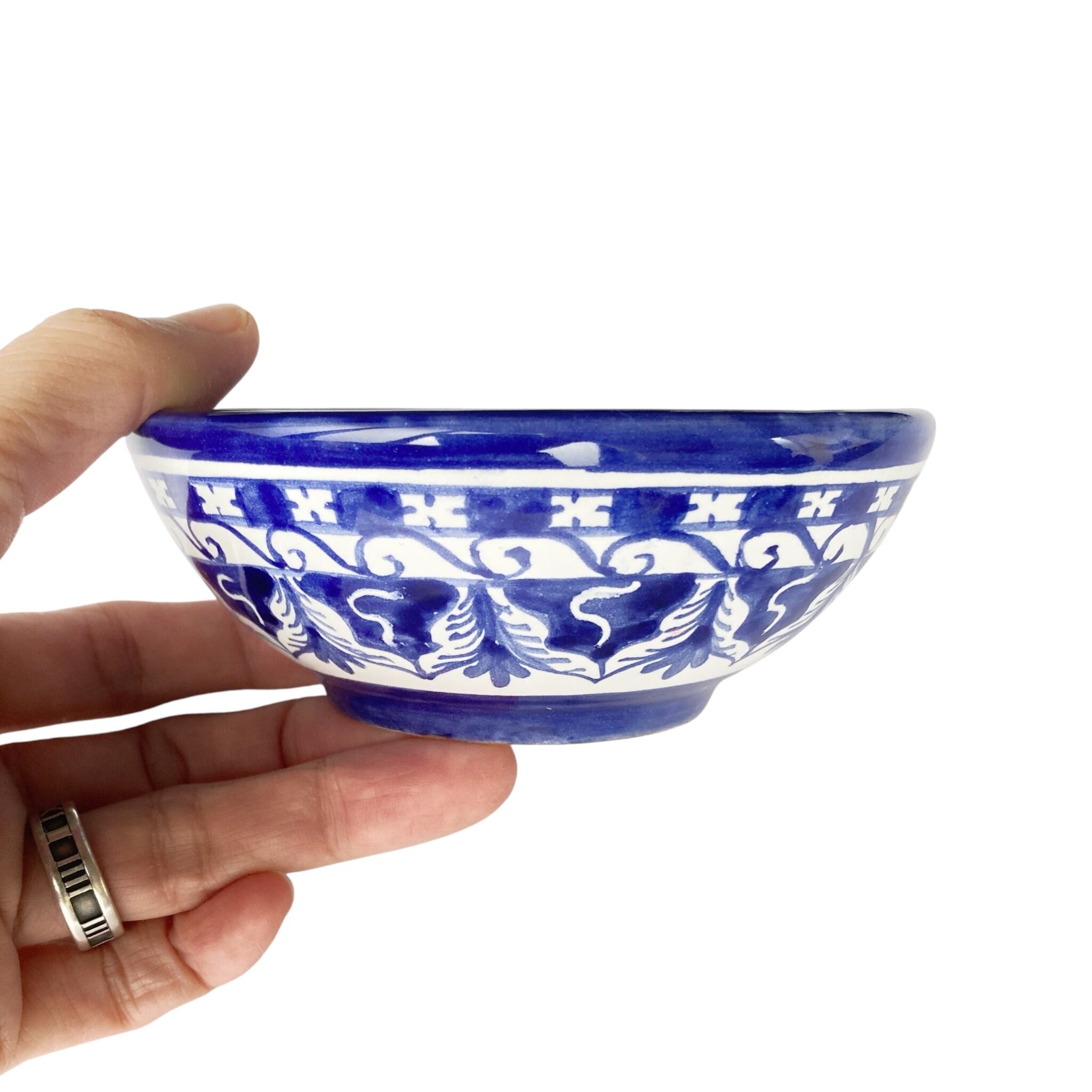 ブルー一色で描いた幾何学模様のボウル。