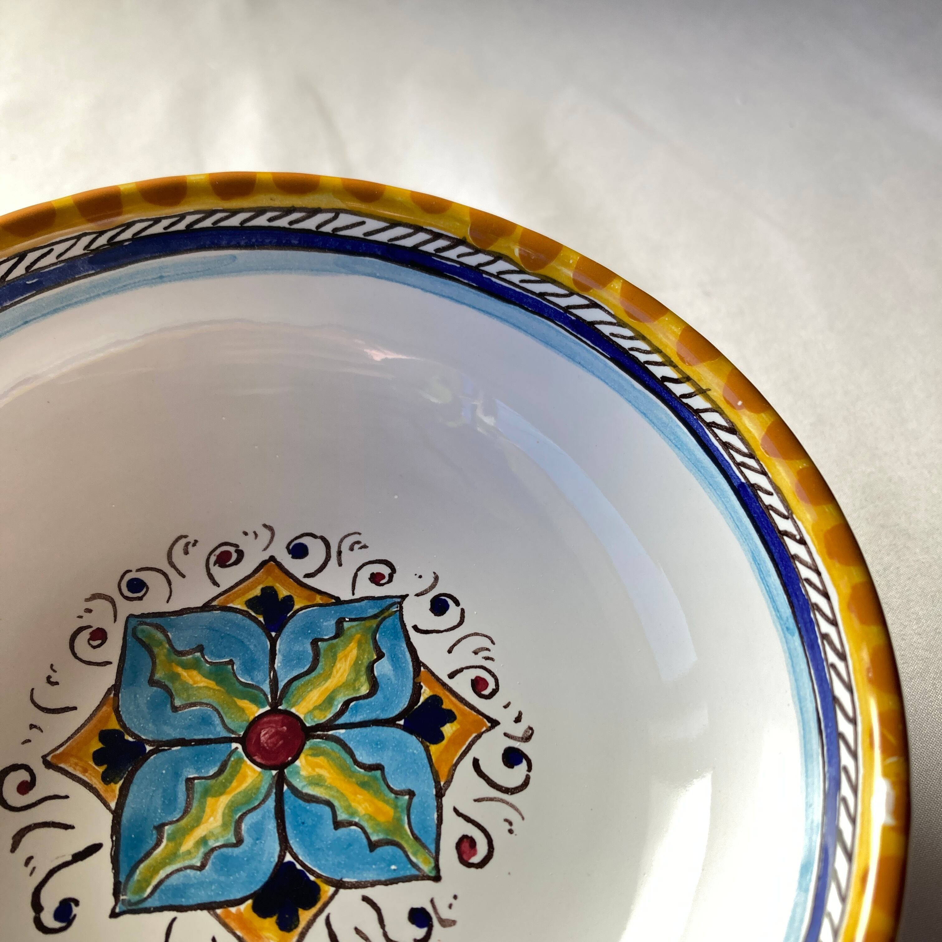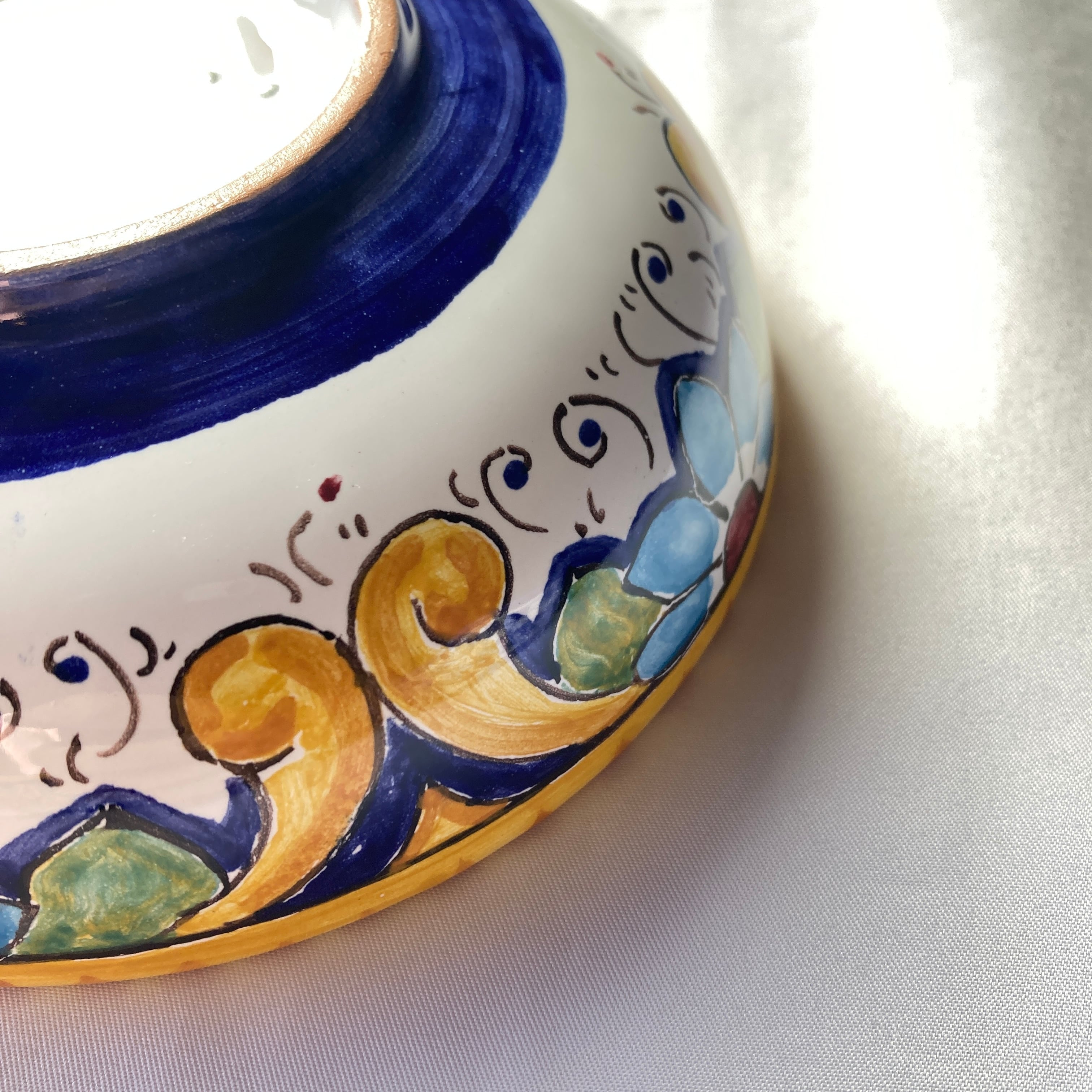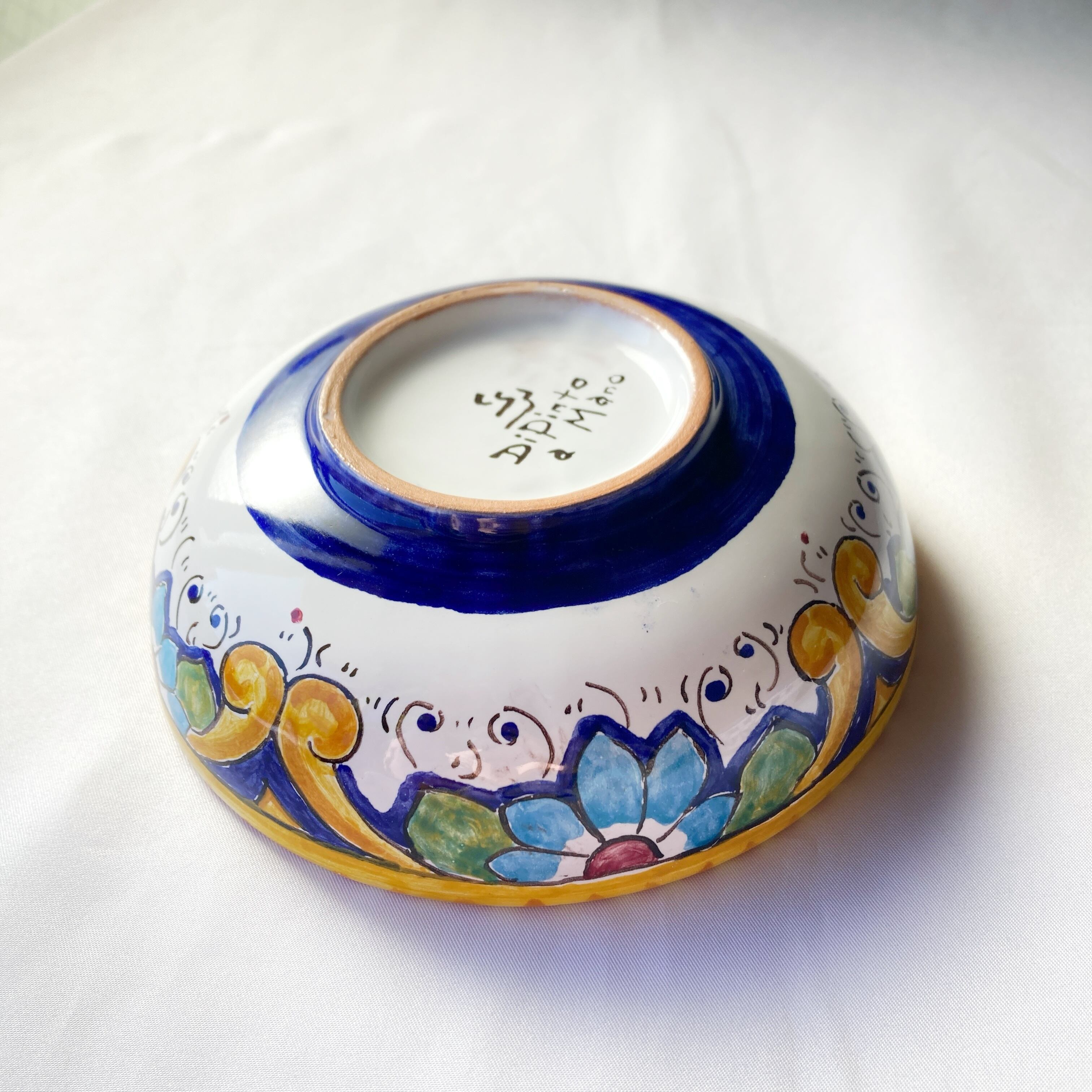 マヨリカ焼きの伝統色で描い草花模様のボウル。