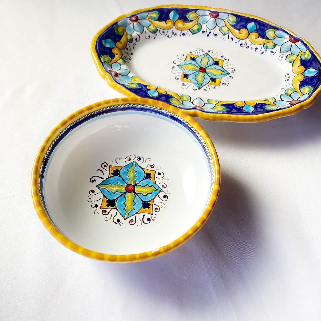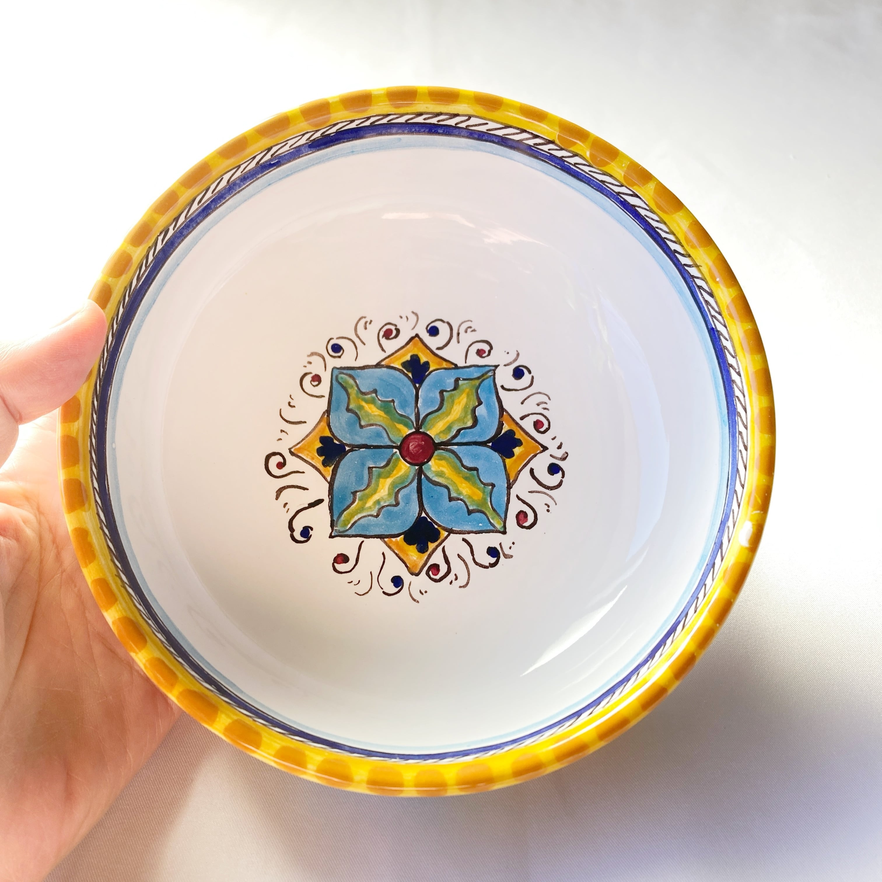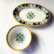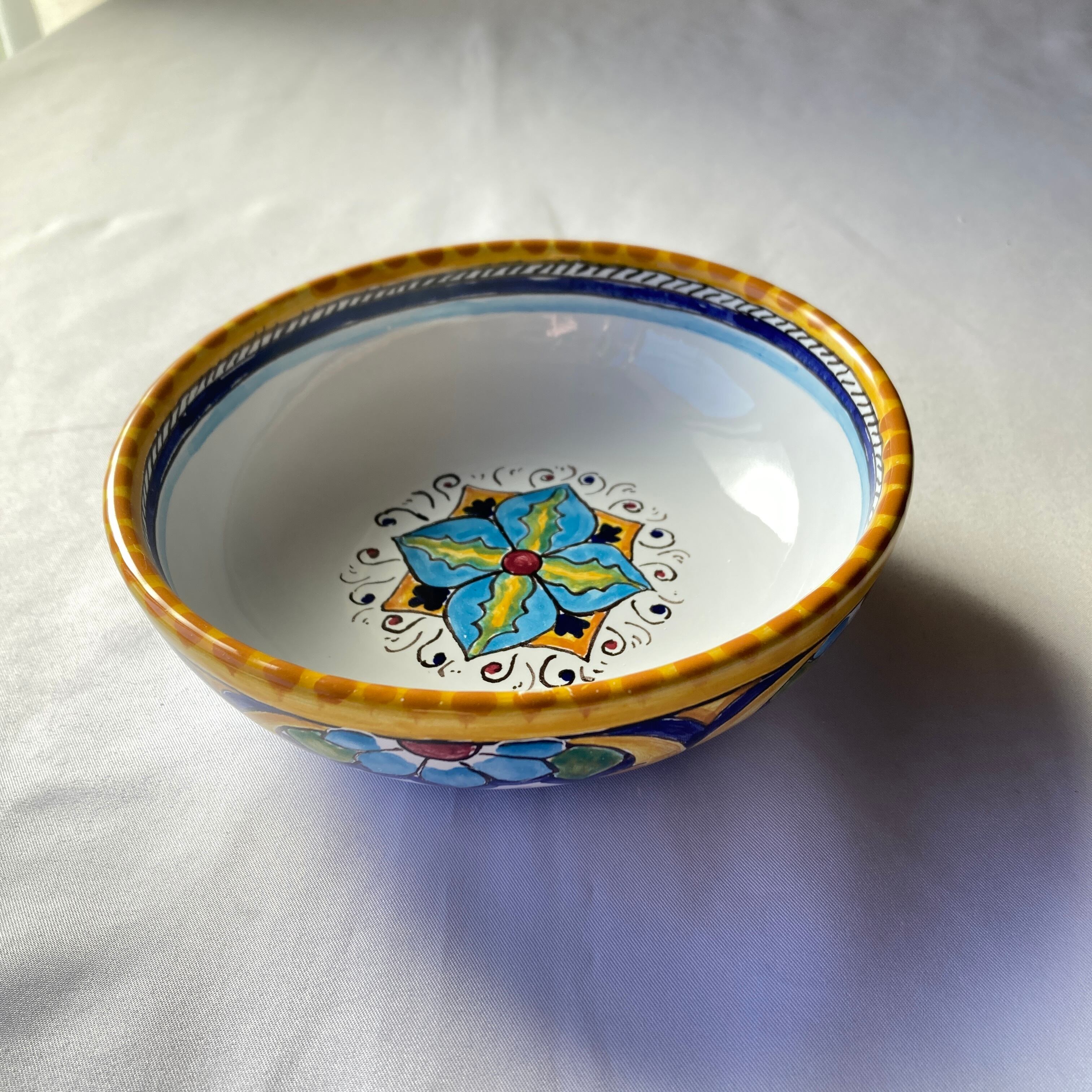 マヨリカ焼きの伝統色で描い草花模様のボウル。