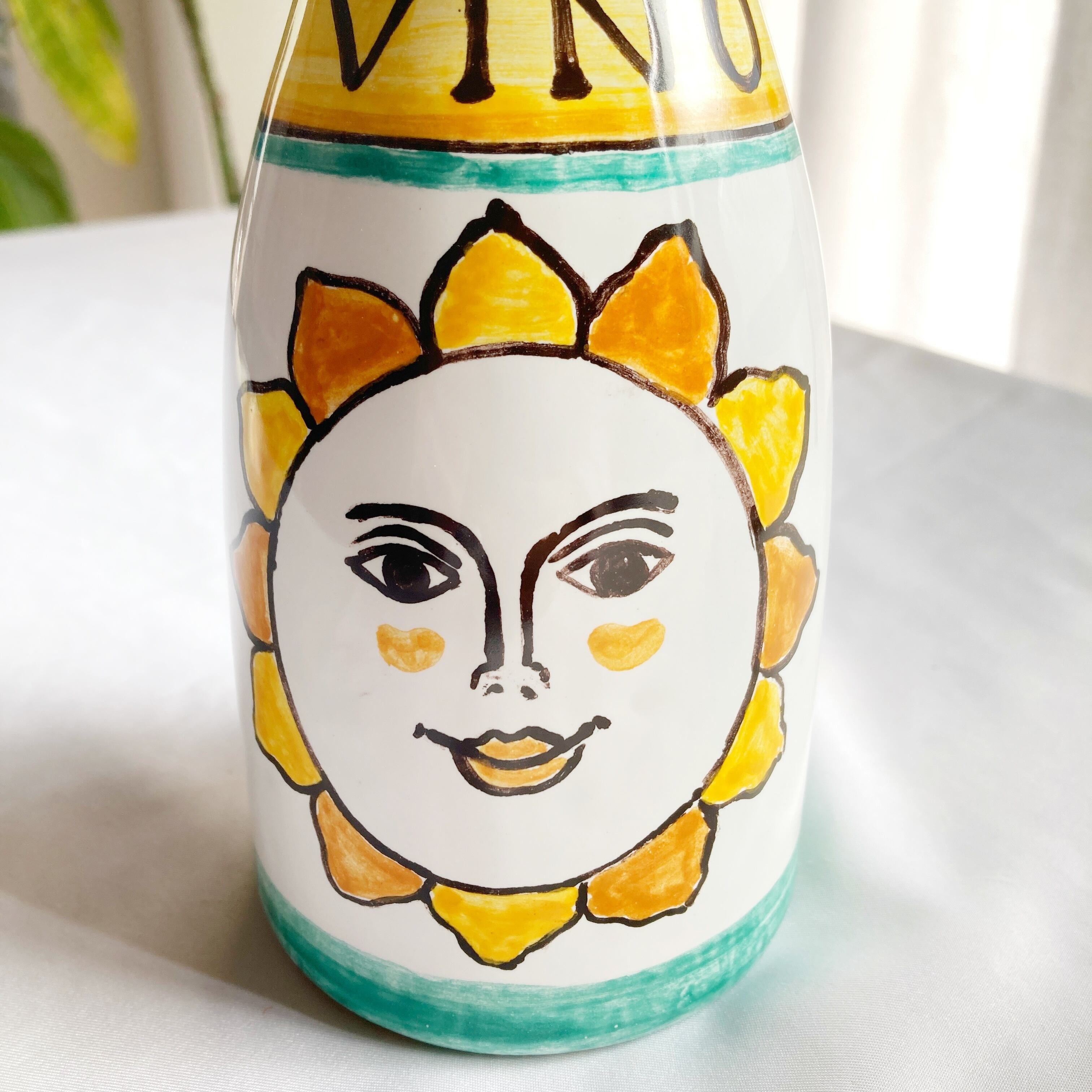 カラフェ 陶器製ボトル 太陽 500ml マヨリカ焼き イタリア陶器 BTG006 ワイン 水差し