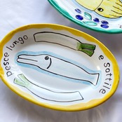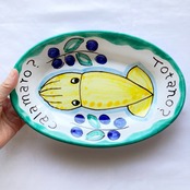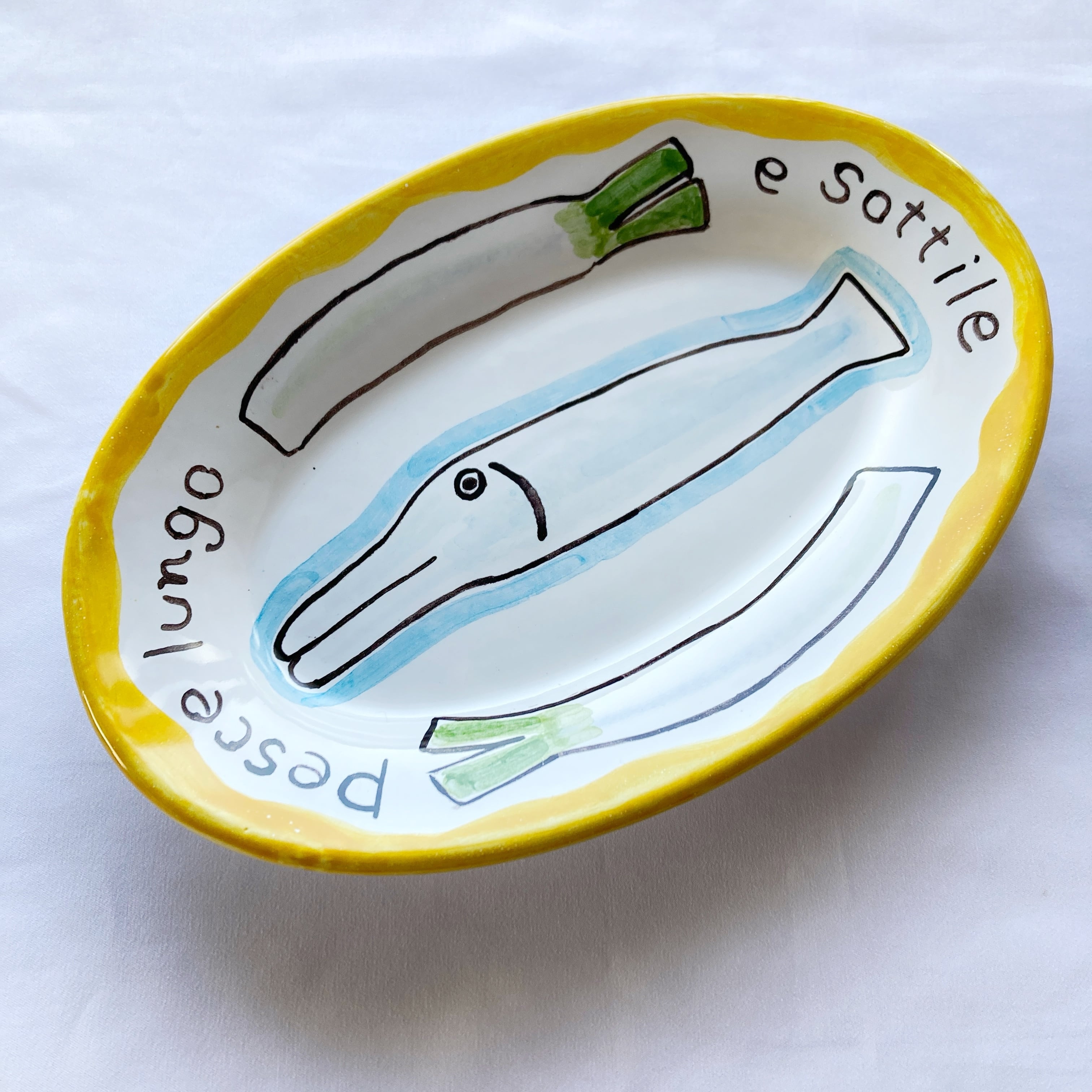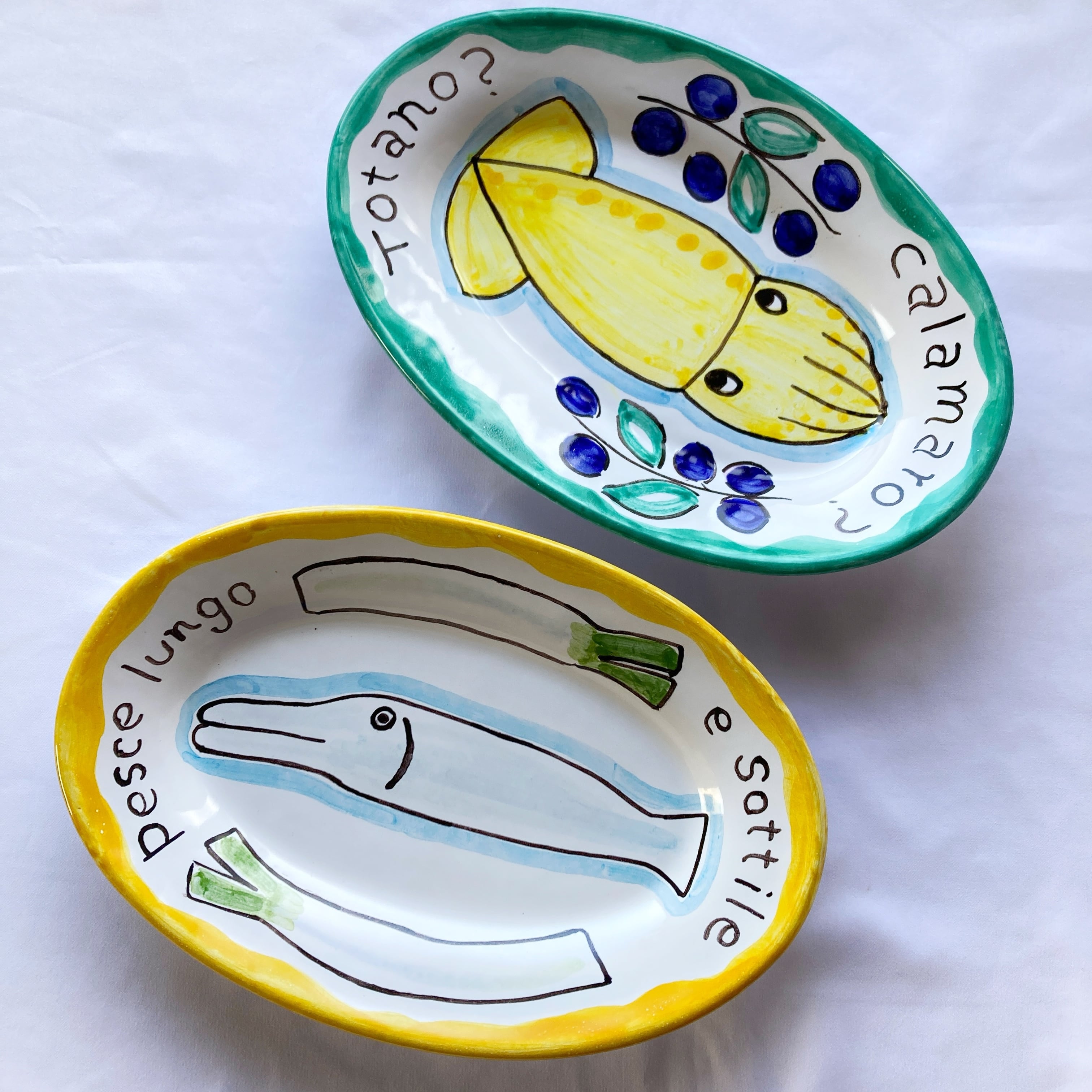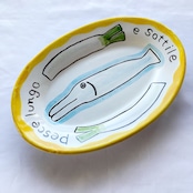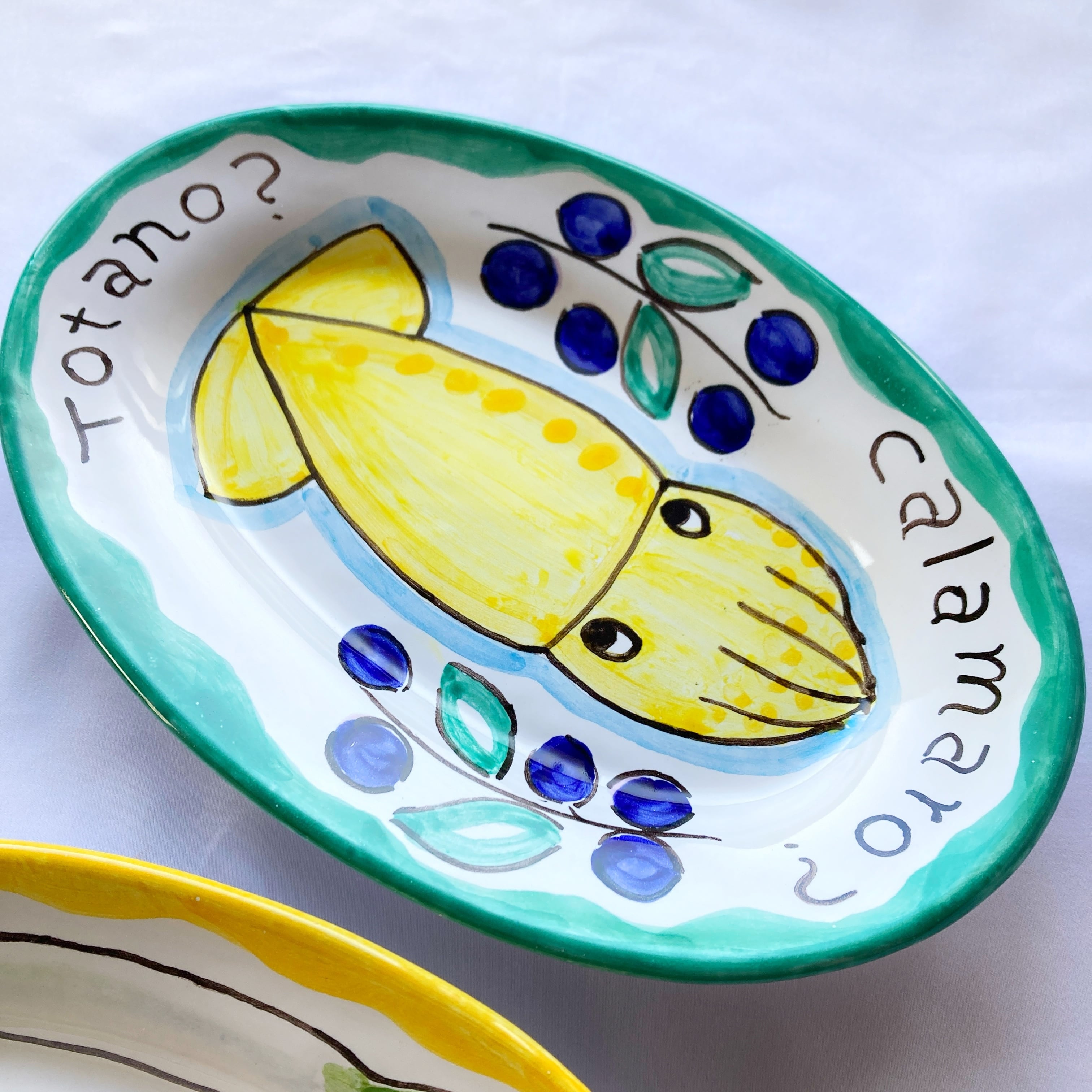 オーバル皿 26cm イカと長い魚 マヨリカ焼き イタリア陶器 OVL077