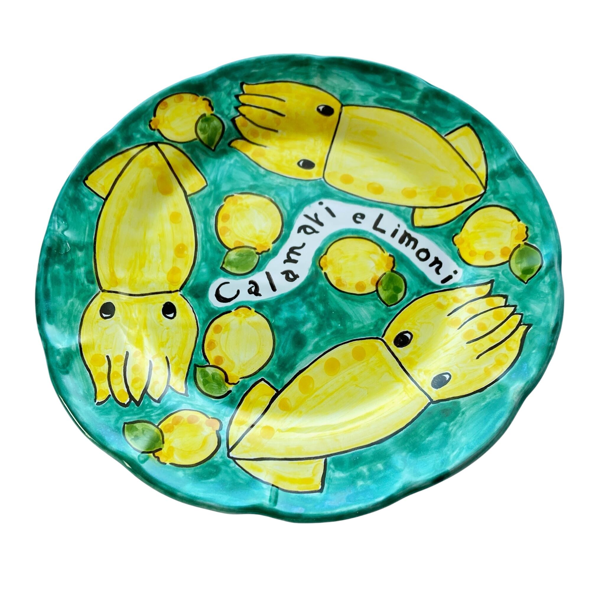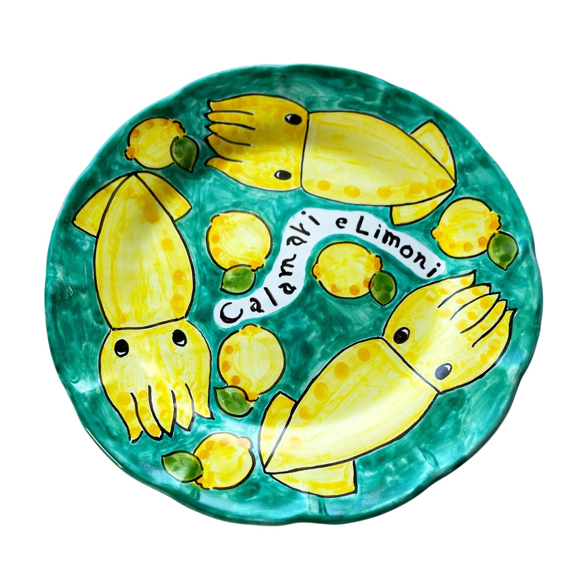 ディナー皿 26cm マヨリカ焼き イタリア陶器 イカとレモン GEO070