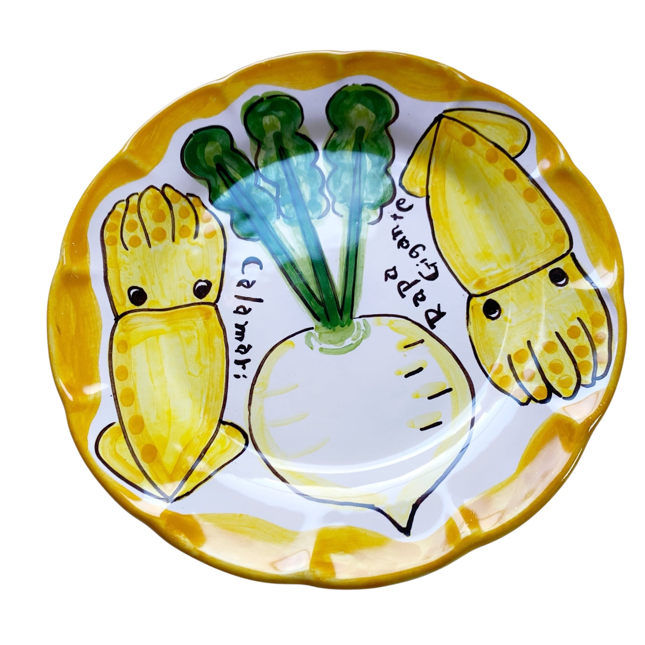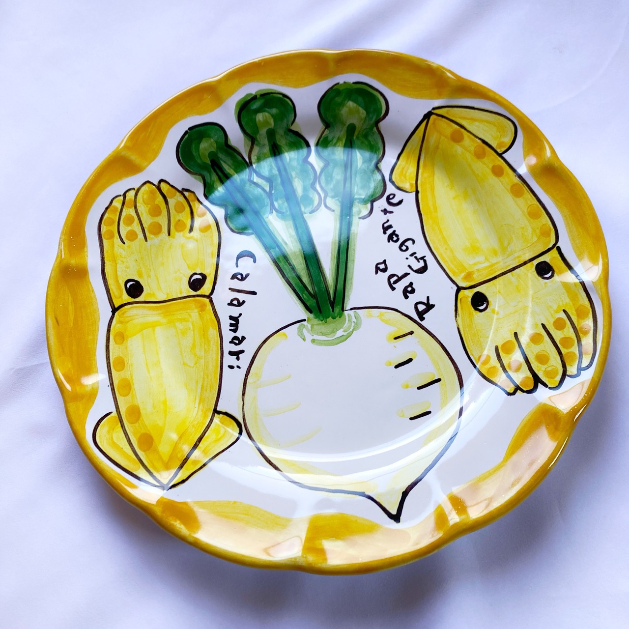 ディナー皿 26cm マヨリカ焼き イタリア陶器 イカ GEO076