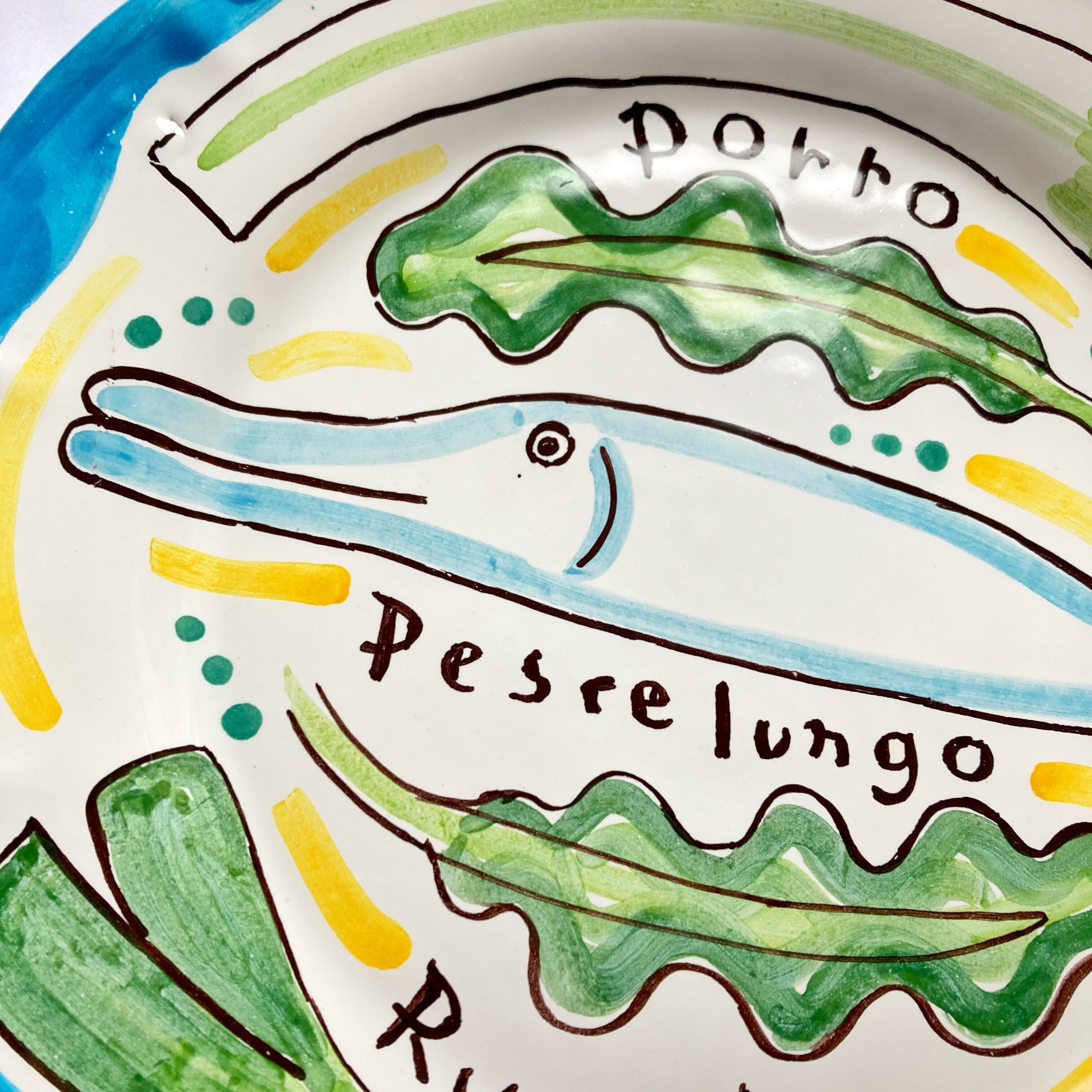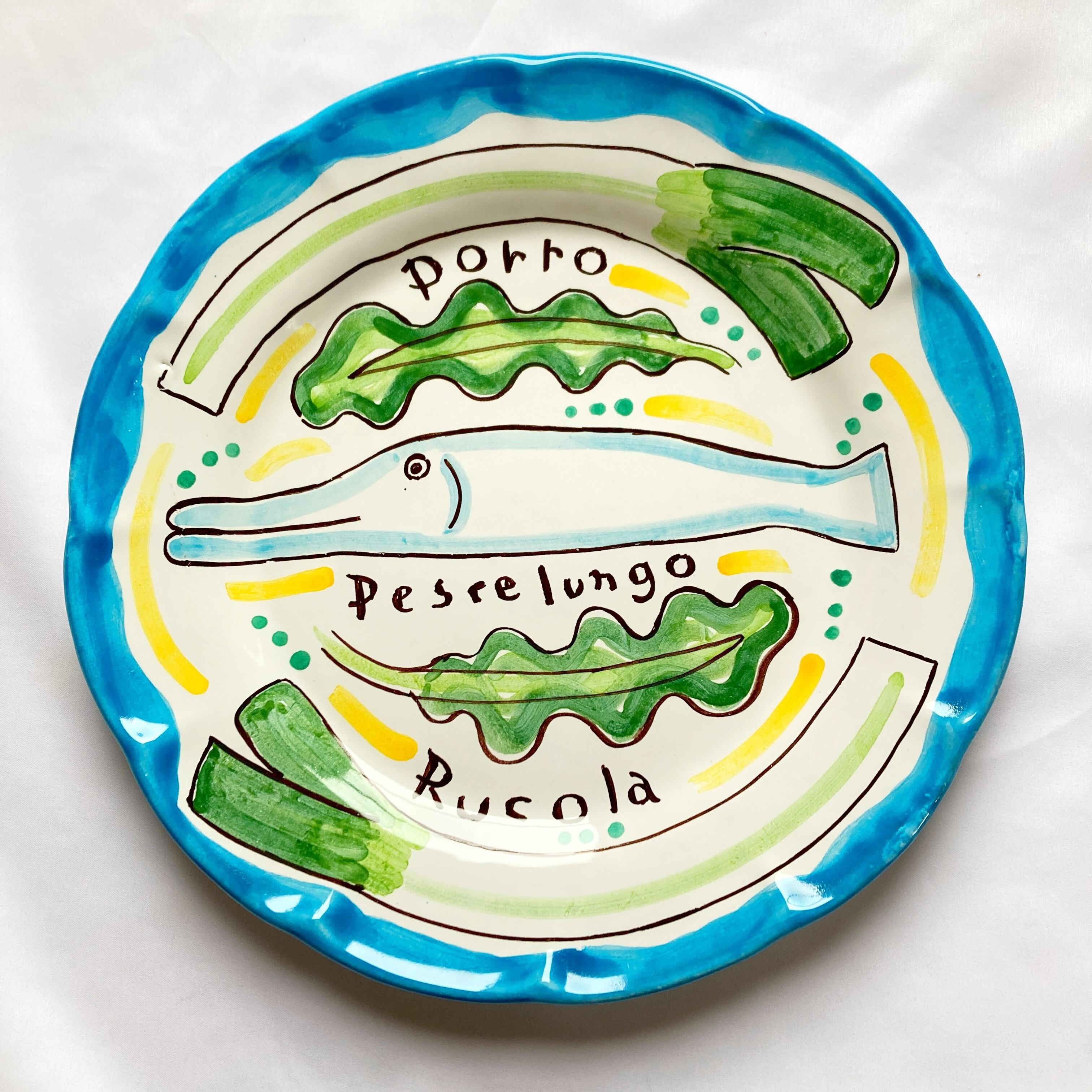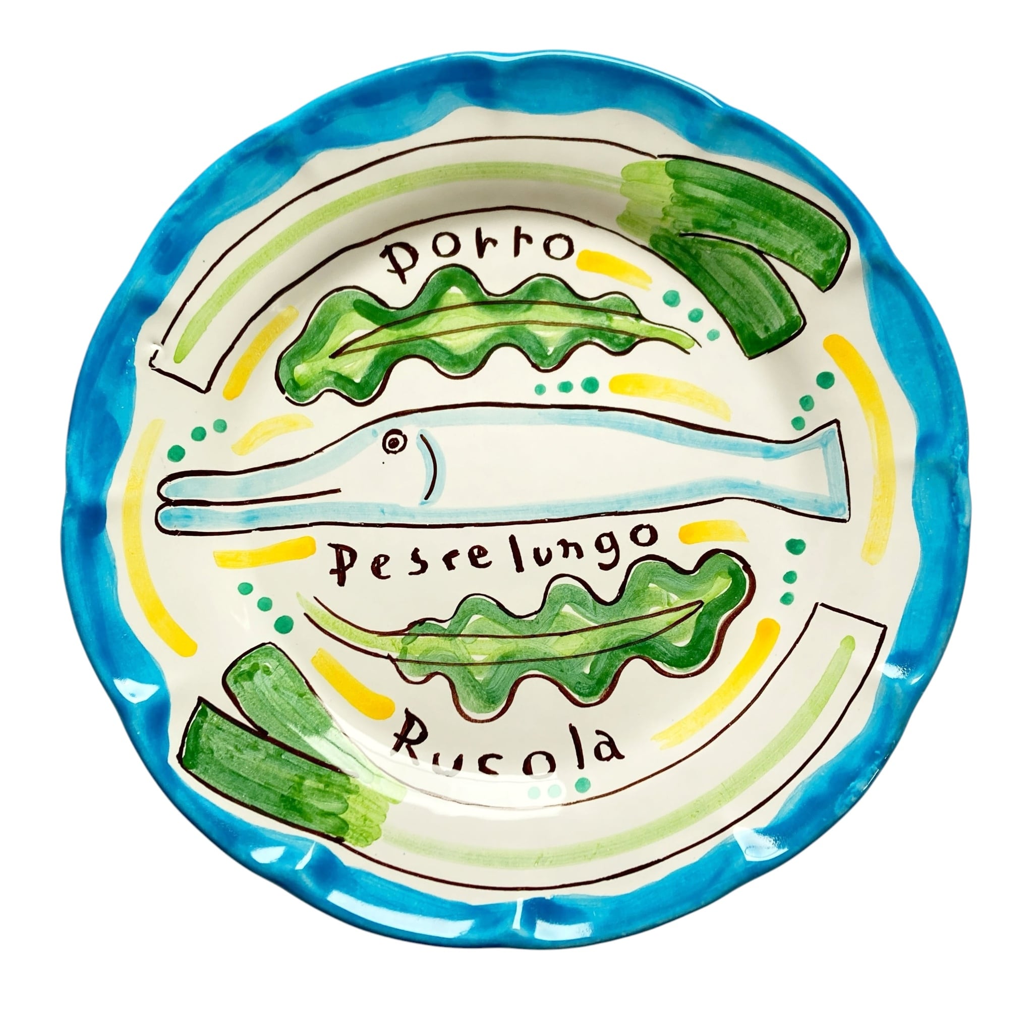 ディナー皿 26cm マヨリカ焼き イタリア陶器 長い魚 GEO077