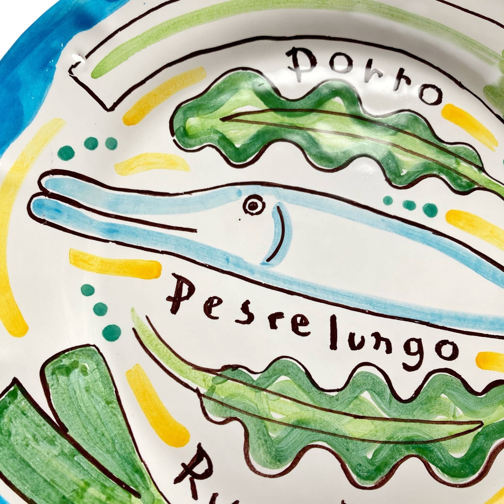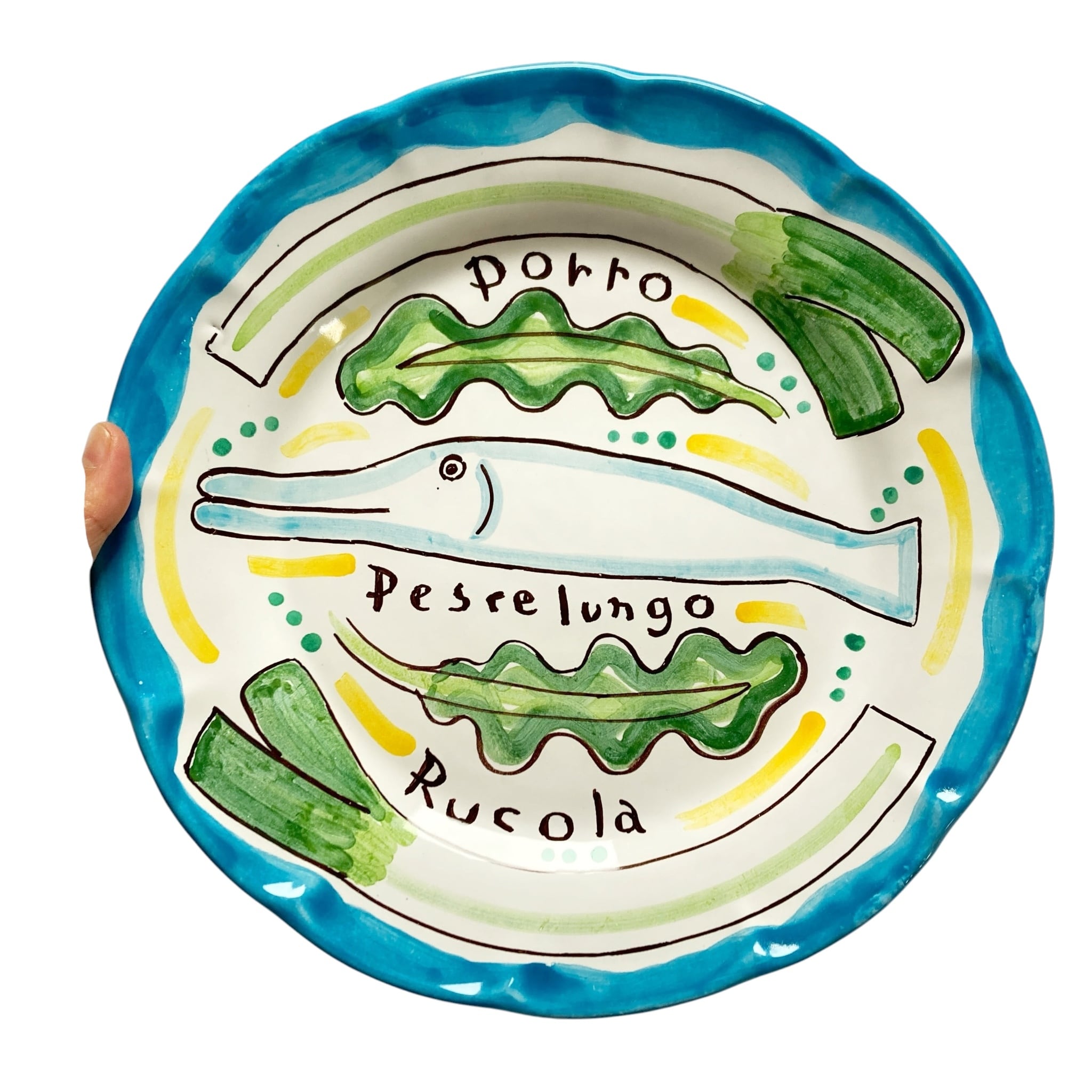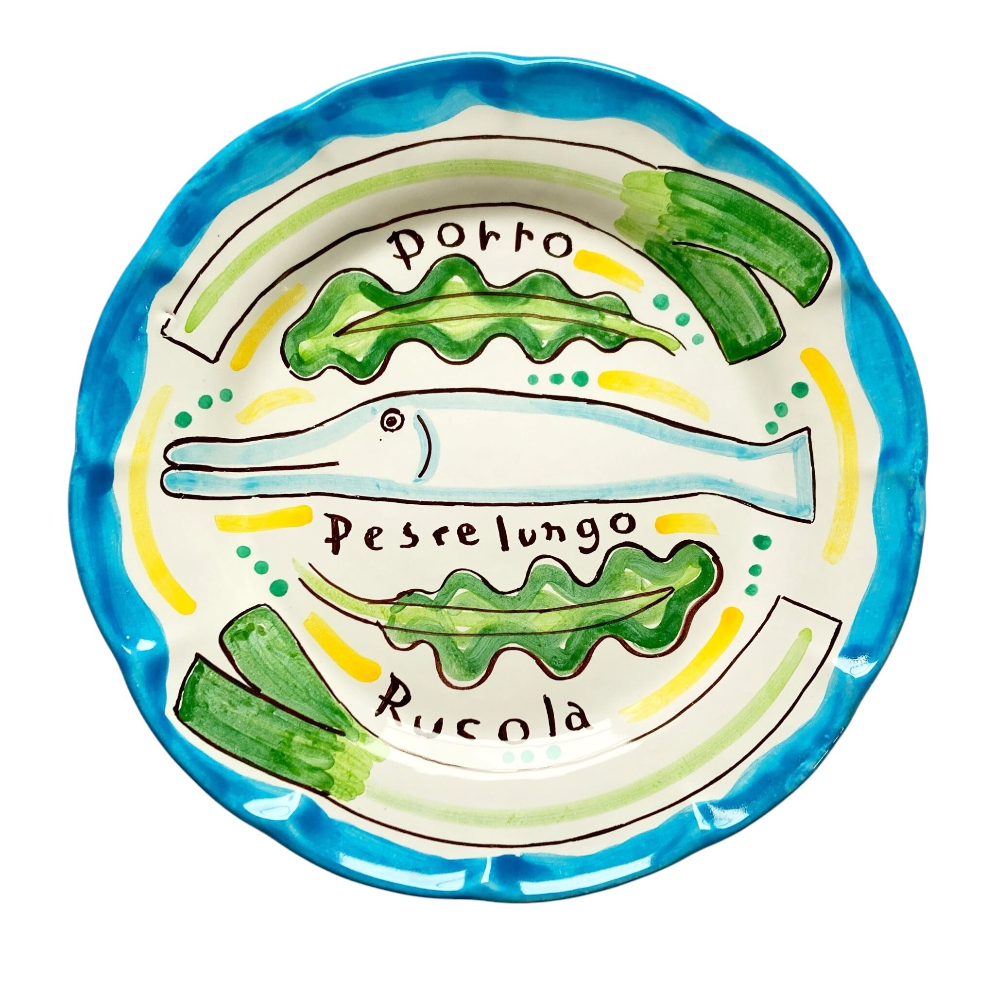 ディナー皿 26cm マヨリカ焼き イタリア陶器 長い魚 GEO077