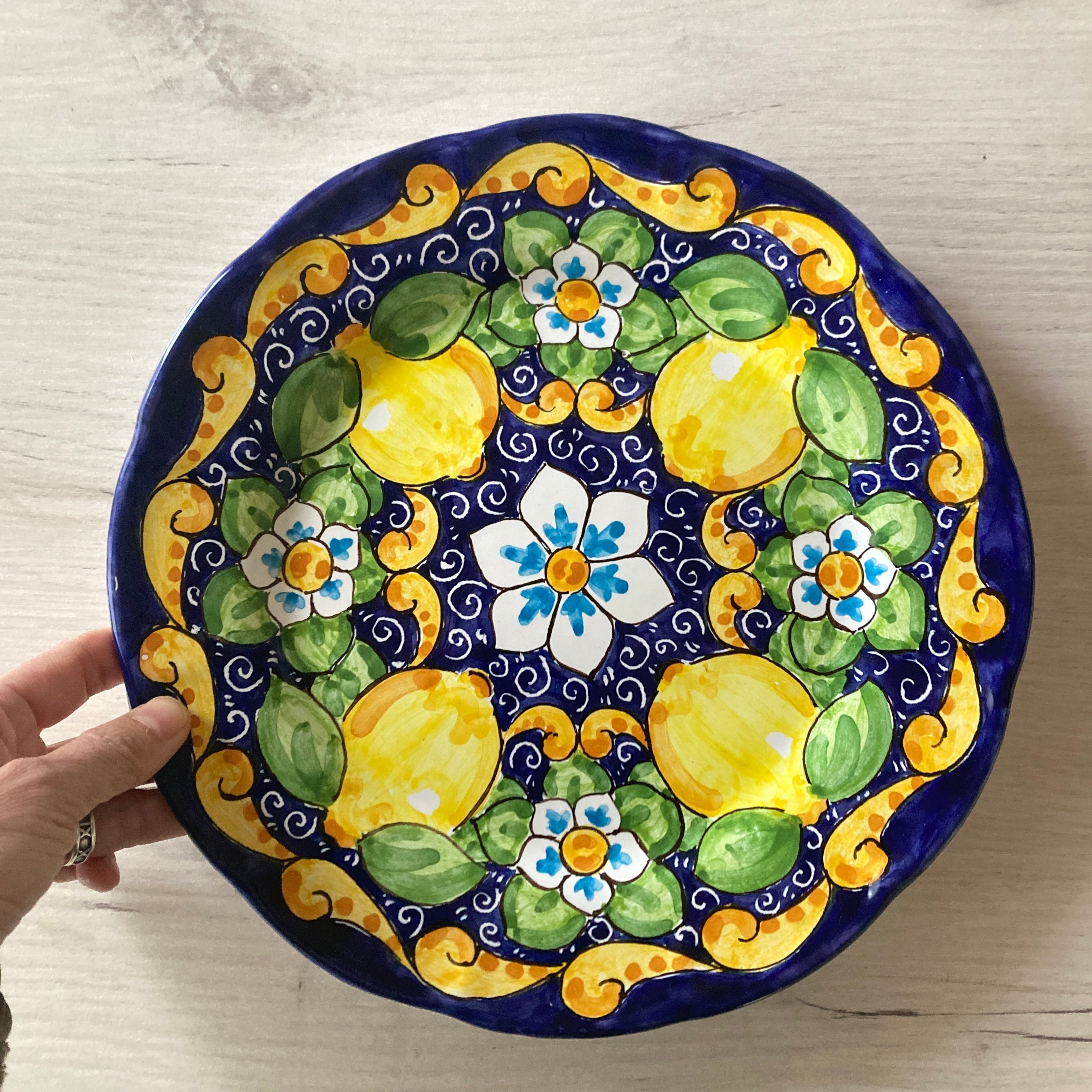 [outlet]絵皿 26cm GEO045 マヨリカ焼き イタリア陶器 レモン柄 ディナー皿 コバルトブルー