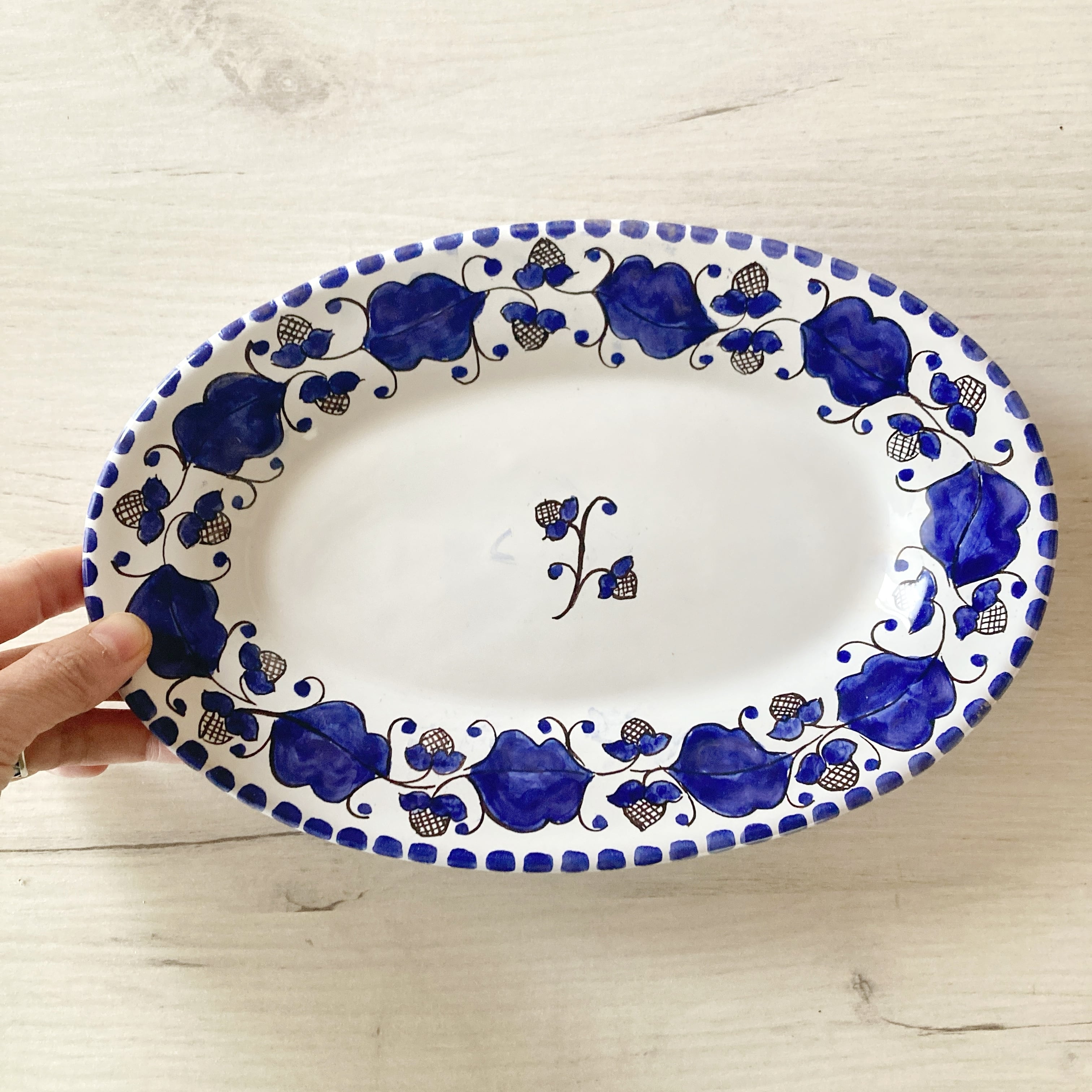 [outlet]オーバル皿 26cm マヨリカ焼き イタリア陶器 青いお皿