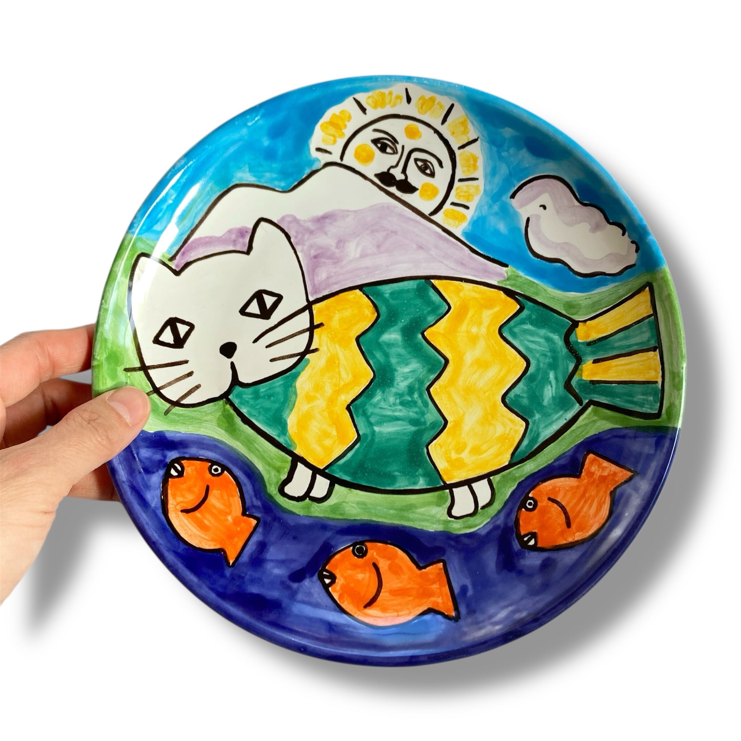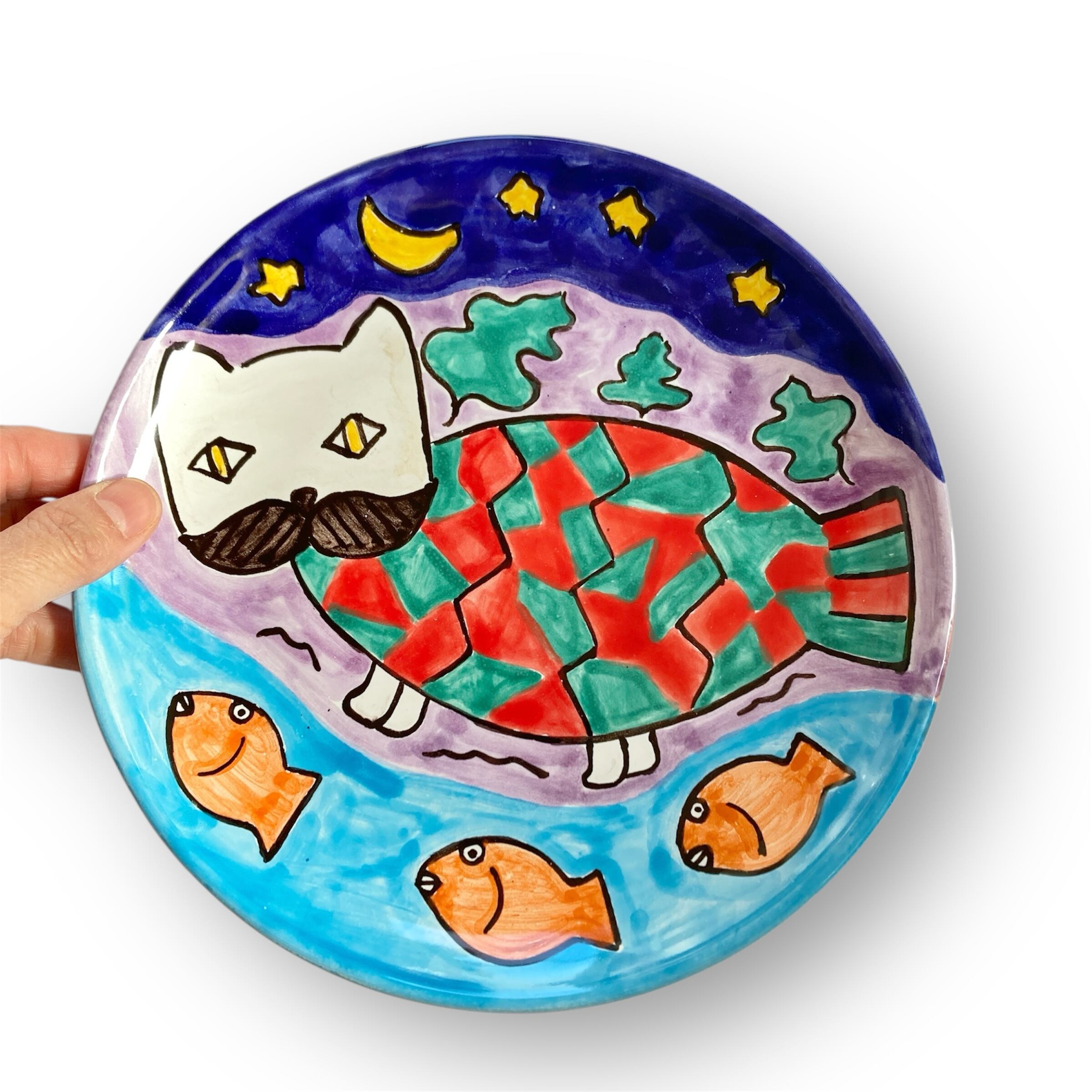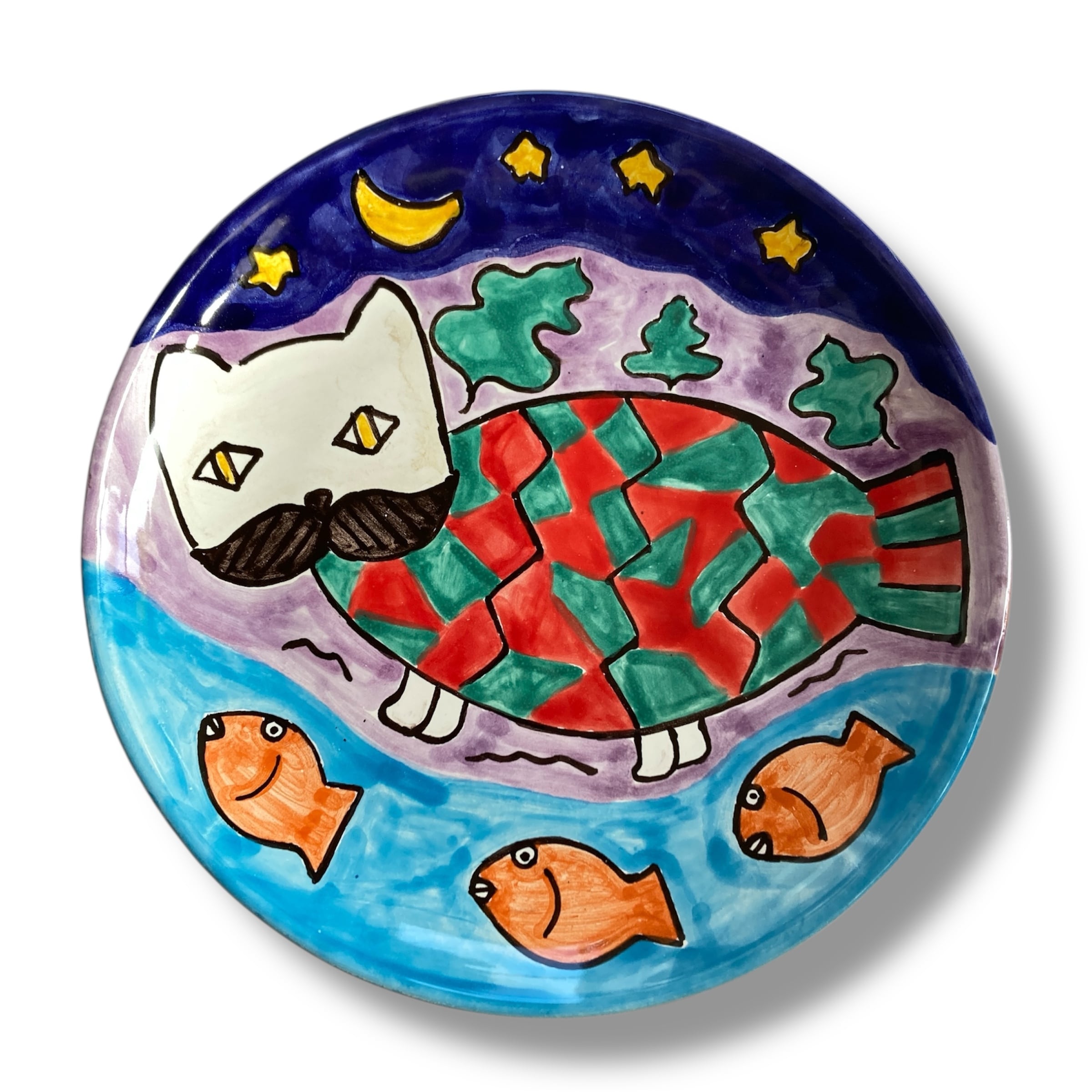 絵皿 M 20cm さかなねこ CRC054 マヨリカ焼き イタリア陶器