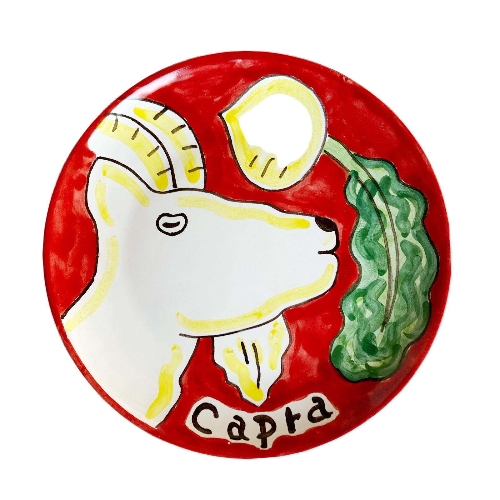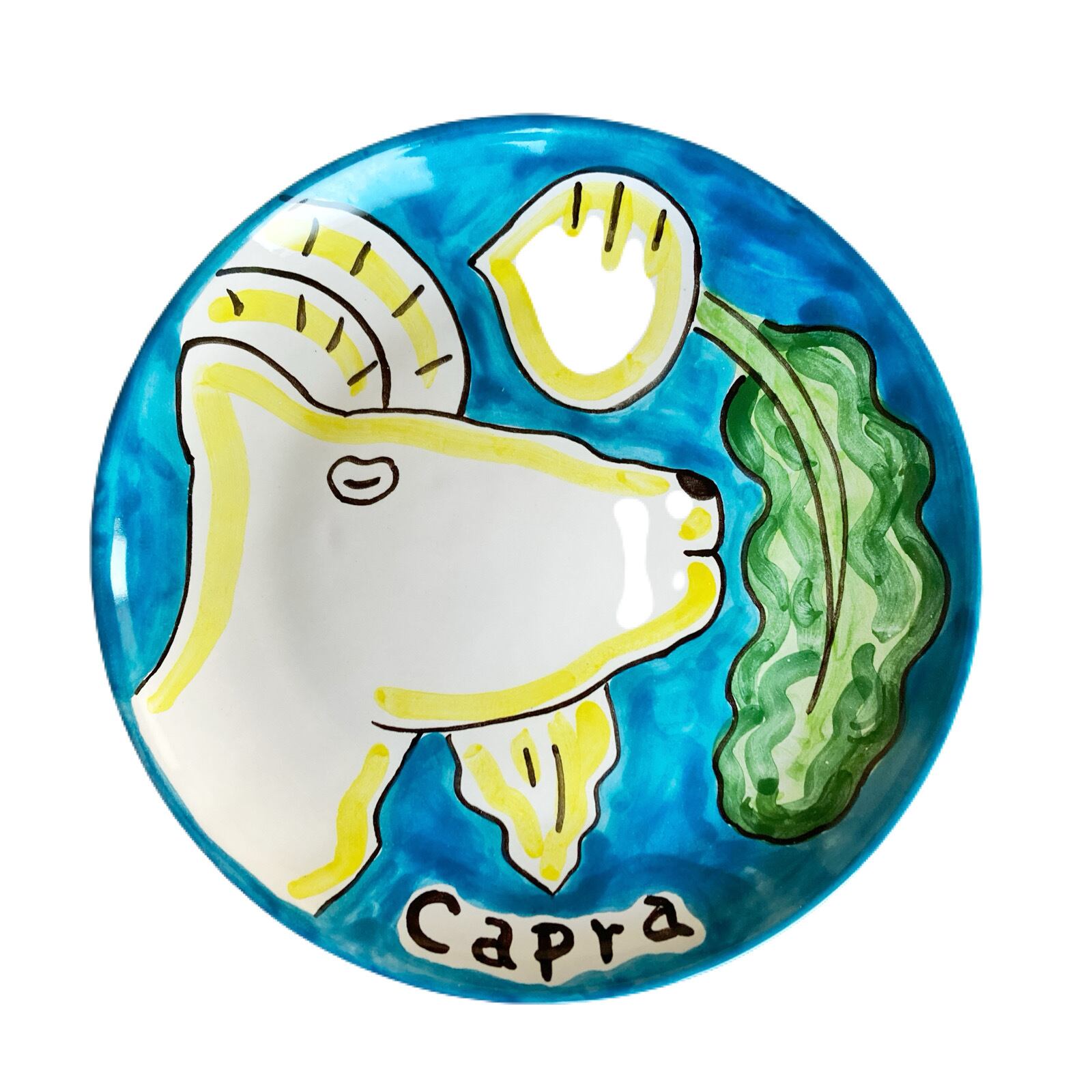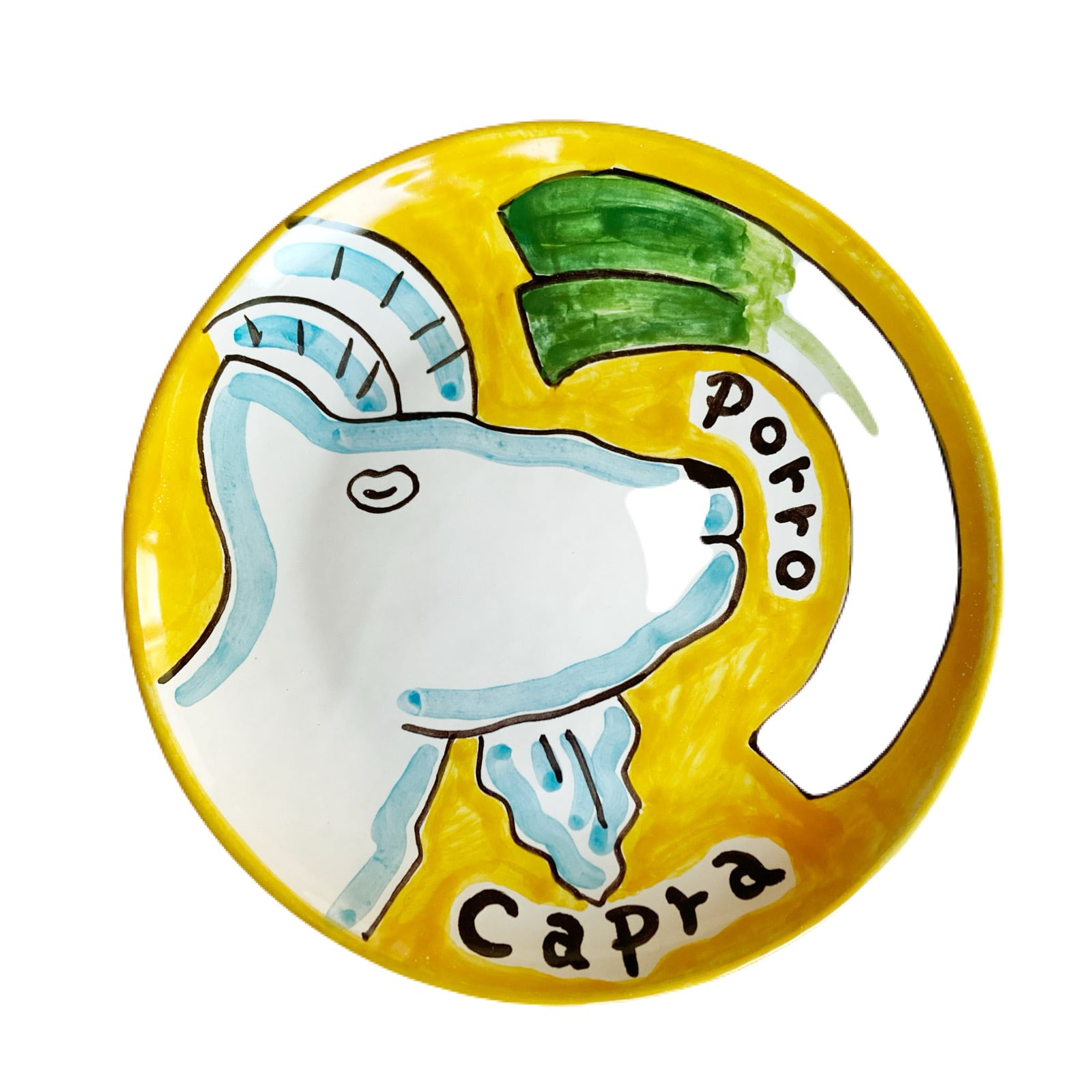 丸皿 M 20cm ヤギと野菜 マヨリカ焼き イタリア陶器 PIA026
