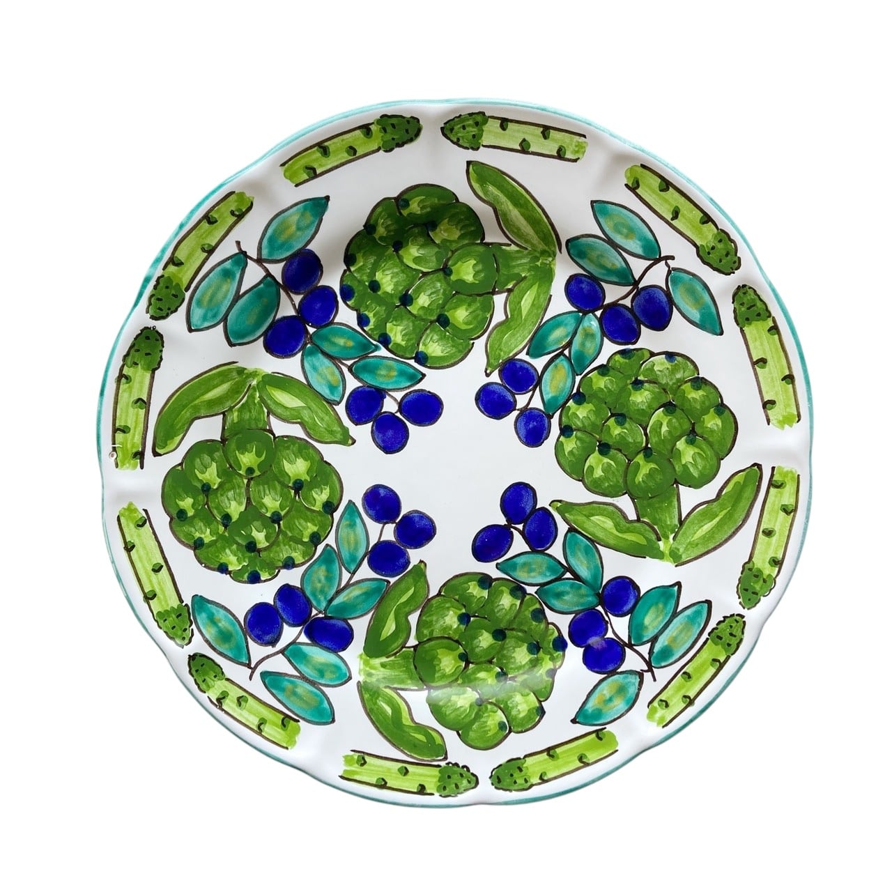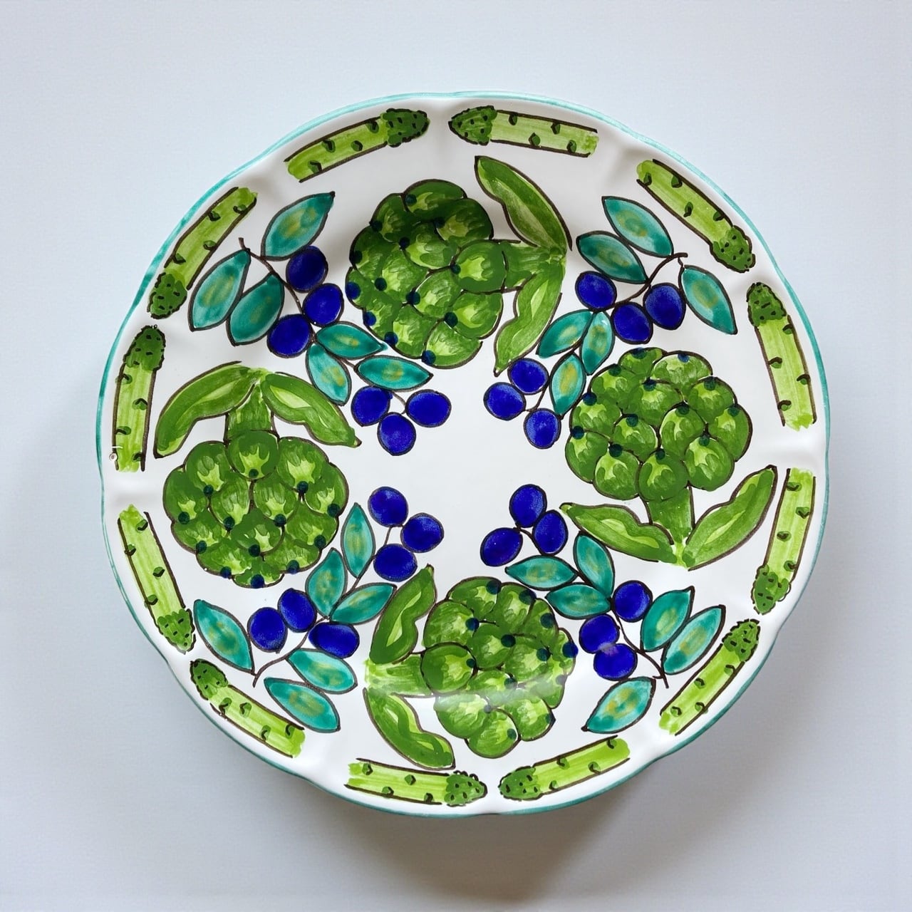 丸皿 26cm GEO024 マヨリカ焼き イタリア陶器 アーティチョーク オリーブ