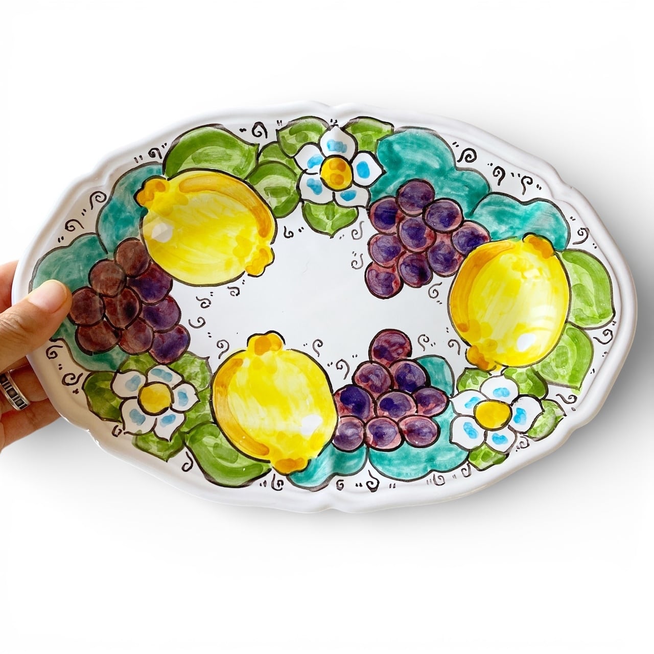 オーバル皿 25cm OVL045 マヨリカ焼き イタリア陶器 ブドウとレモン