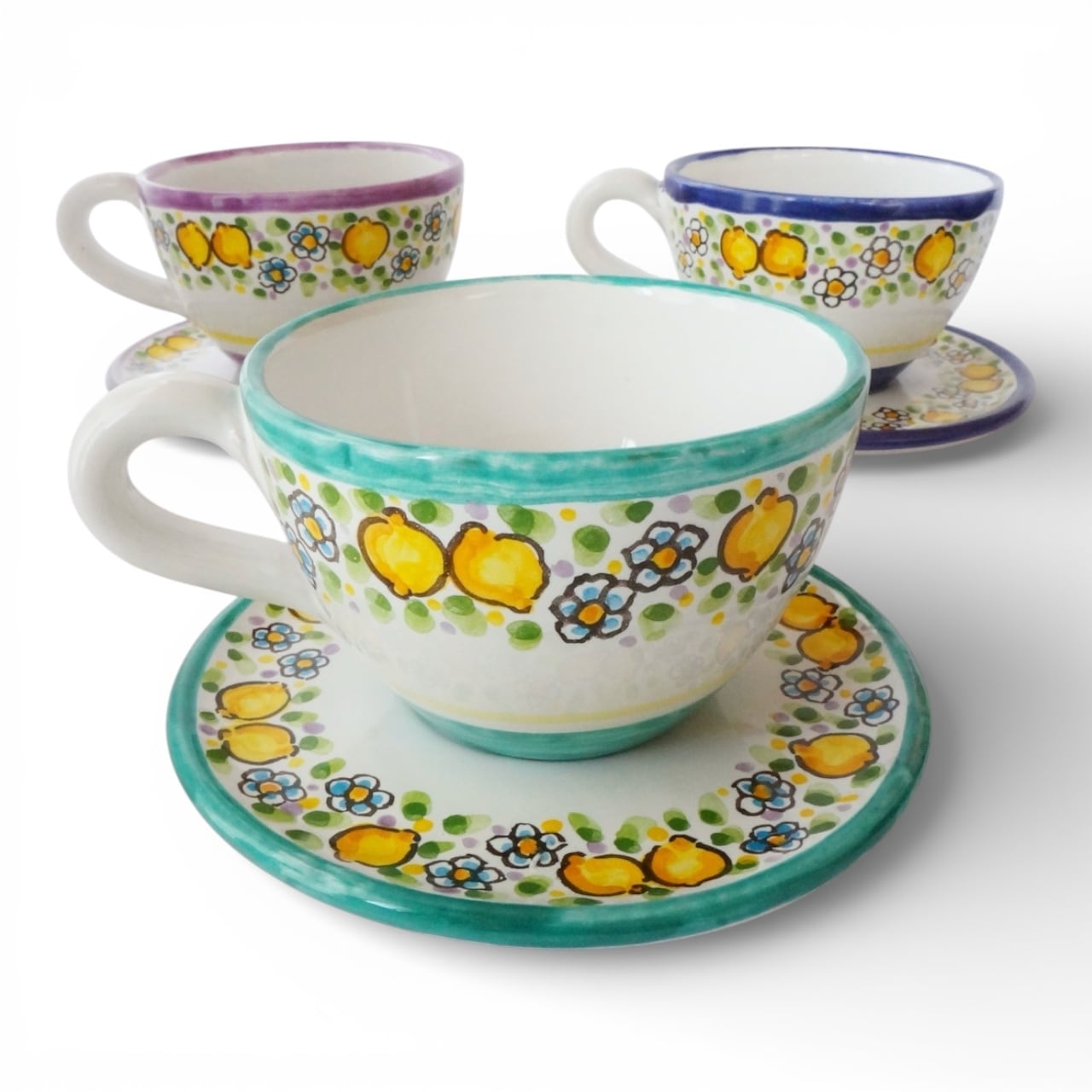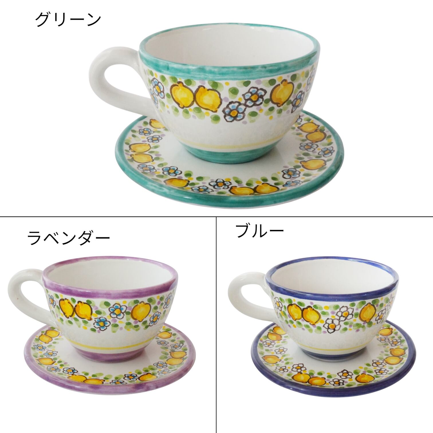 カップ&ソーサー TAZ027 マヨリカ焼き イタリア陶器 レモン柄 ティーカップ コーヒーカップ