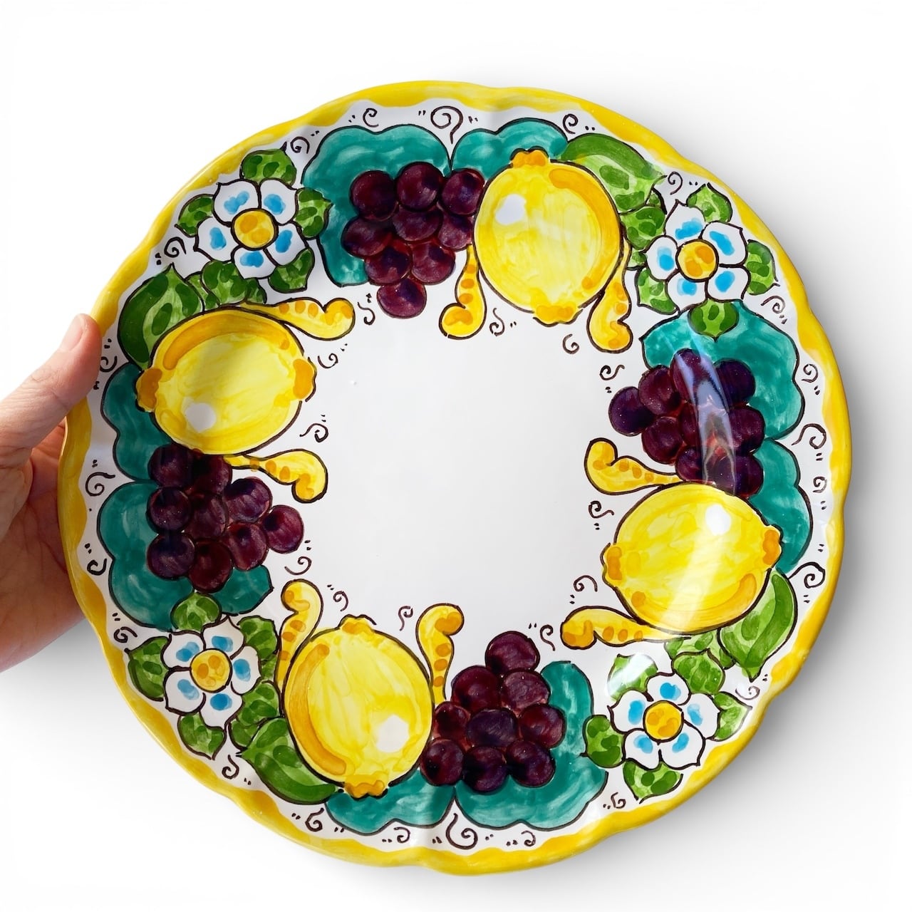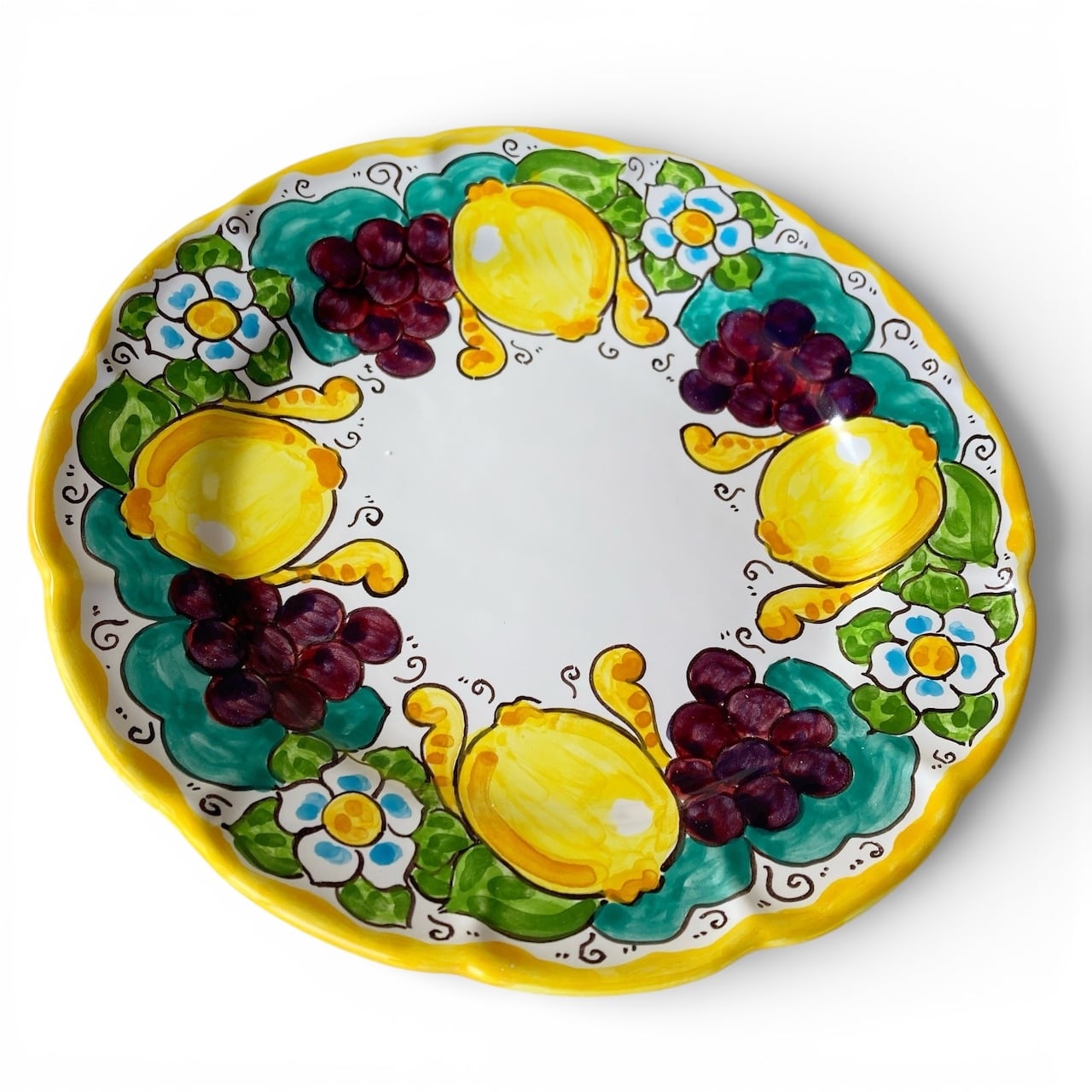 絵皿 26cm GEO041 マヨリカ焼き イタリア陶器 レモンとブドウ柄