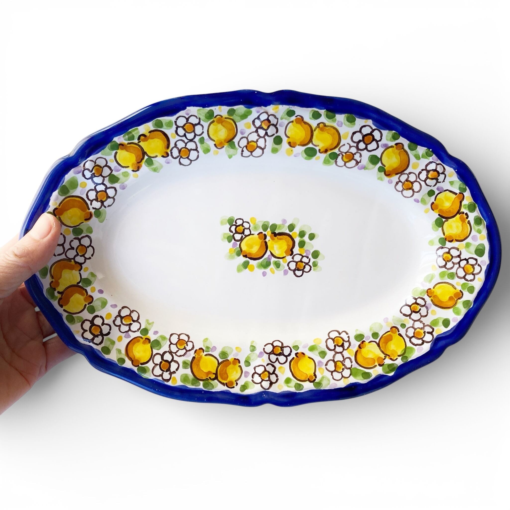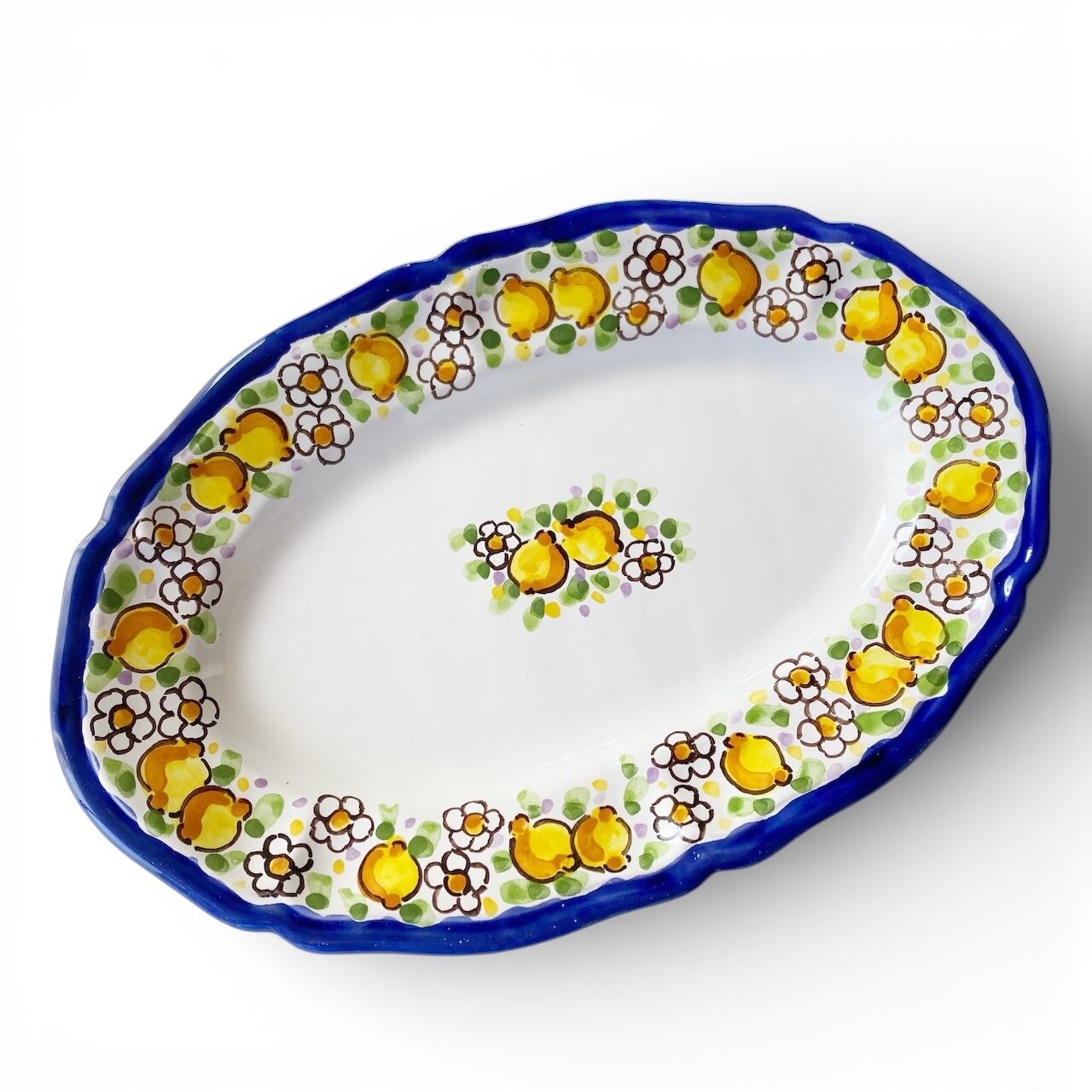 オーバル皿 25cm OVL050 マヨリカ焼き イタリア陶器 レモン柄 コバルトブルー